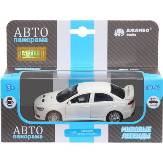 Машинка металлическая Автопанорама 1:40, Mitsubishi Lancer Evolution, белый, открываются двери, в коробке (JB1251259)