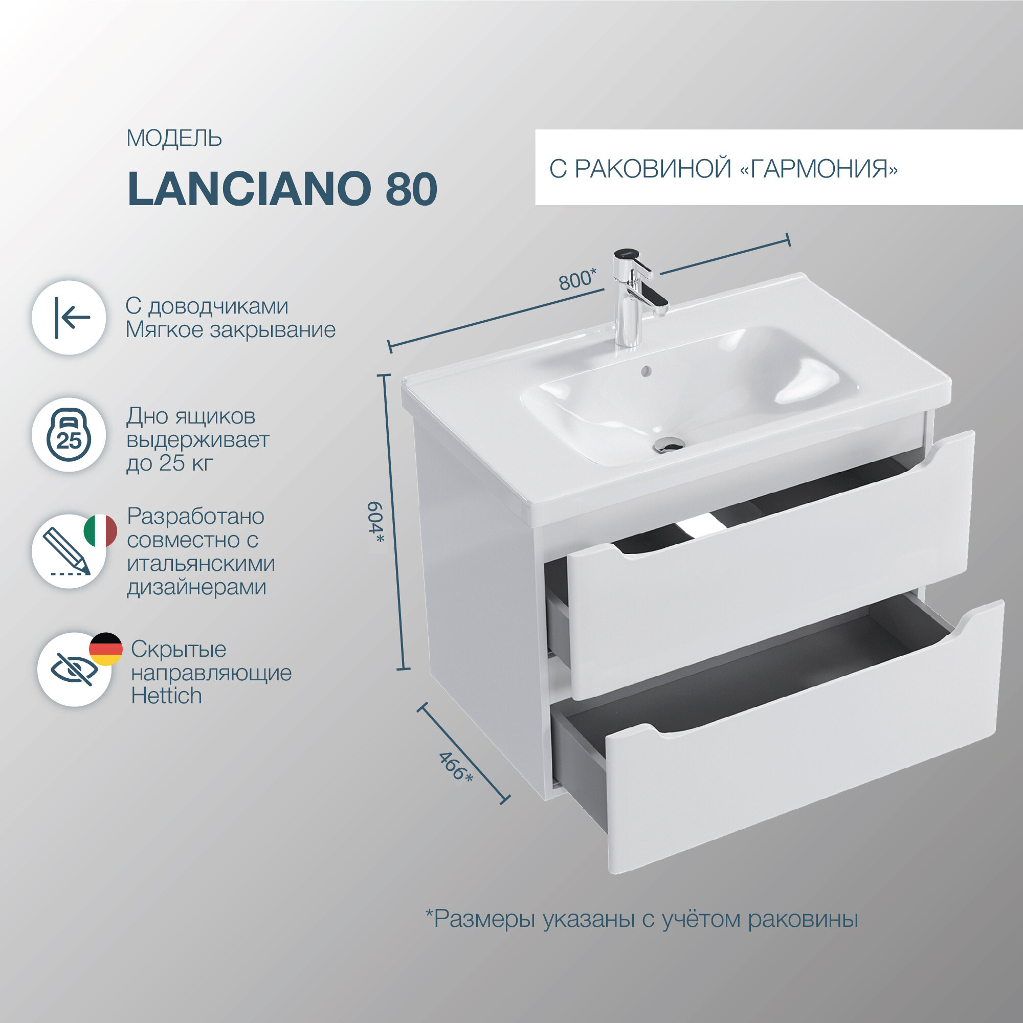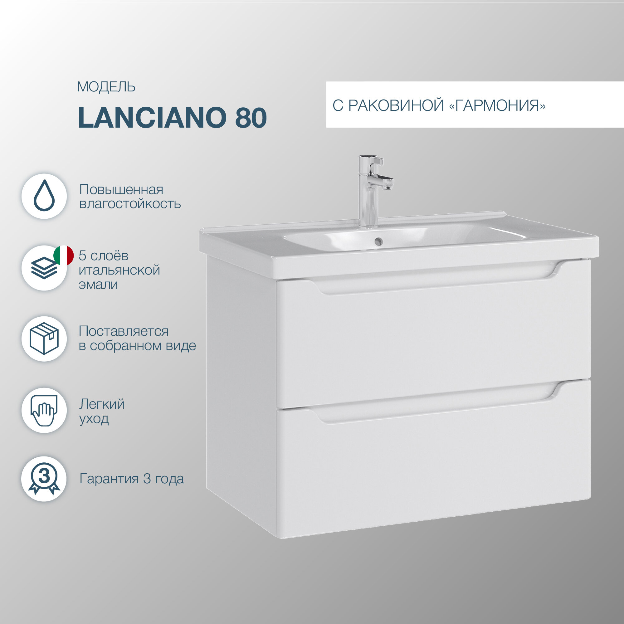 Тумба подвесная SanStar Lanciano 80 с раковиной Гармония 80 (комплект) для ванной комнаты, белая интересное: