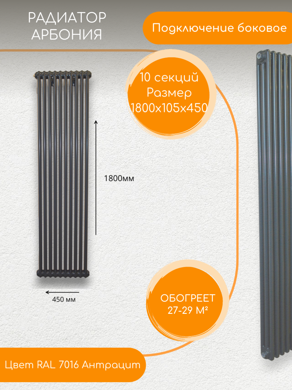 Трубчатый радиатор Arbonia 3180 х 10 секций, боковое подключение, цвет чёрный (RAL7016) интересное: