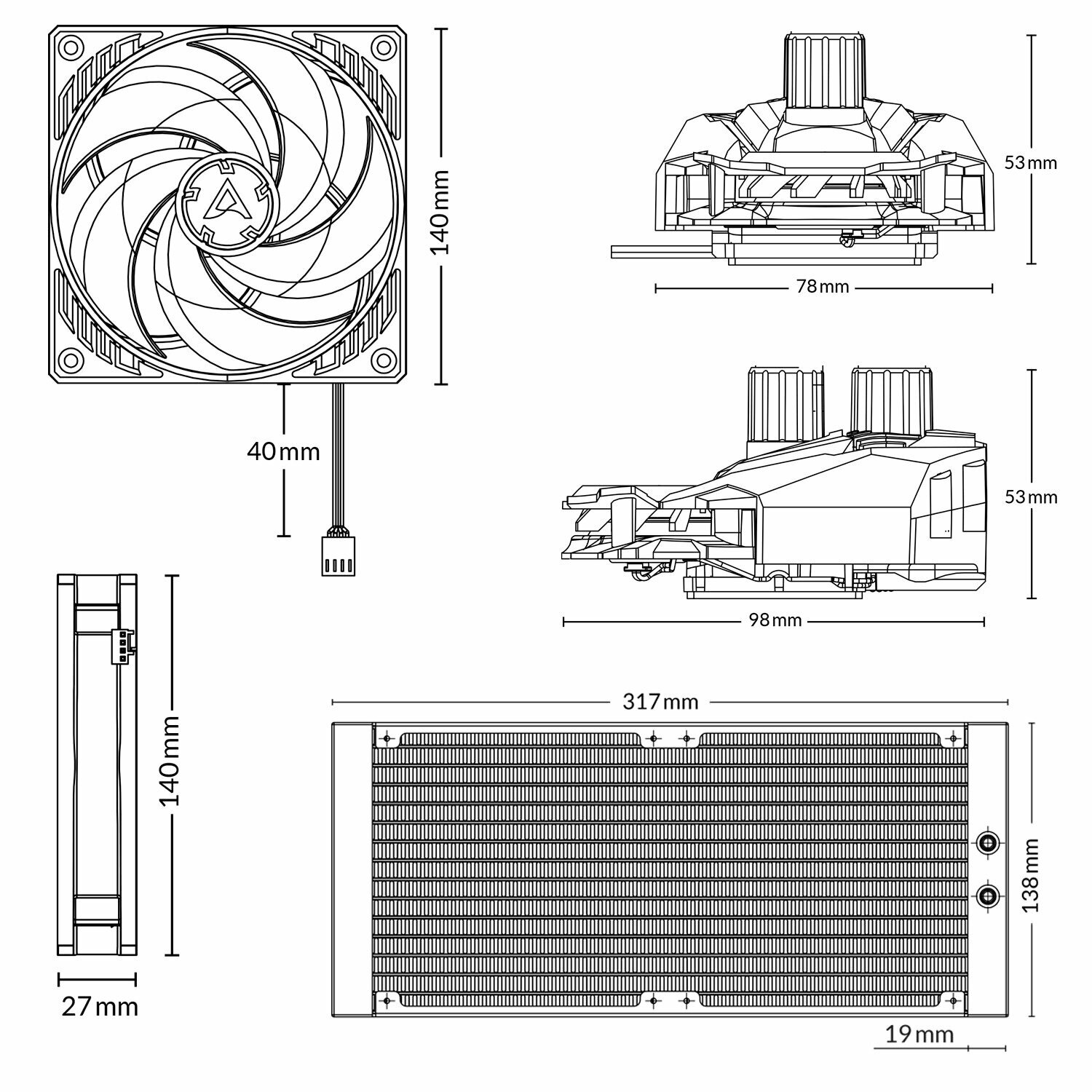 | Ширина кулера | 317 мм |