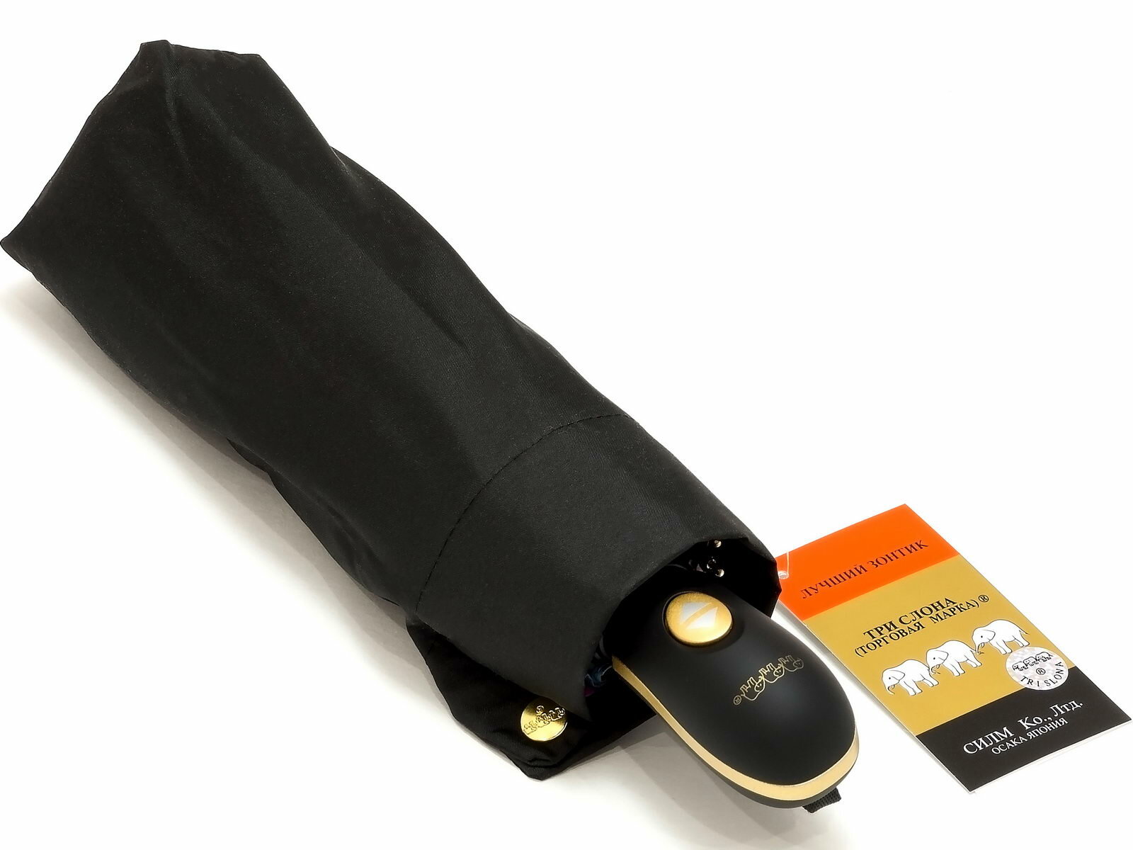Зонт Три слона, автомат, 3 сложения, купол 98 см., 12 спиц, система «антиветер», чехол в комплекте, для женщин, черный L3125-1