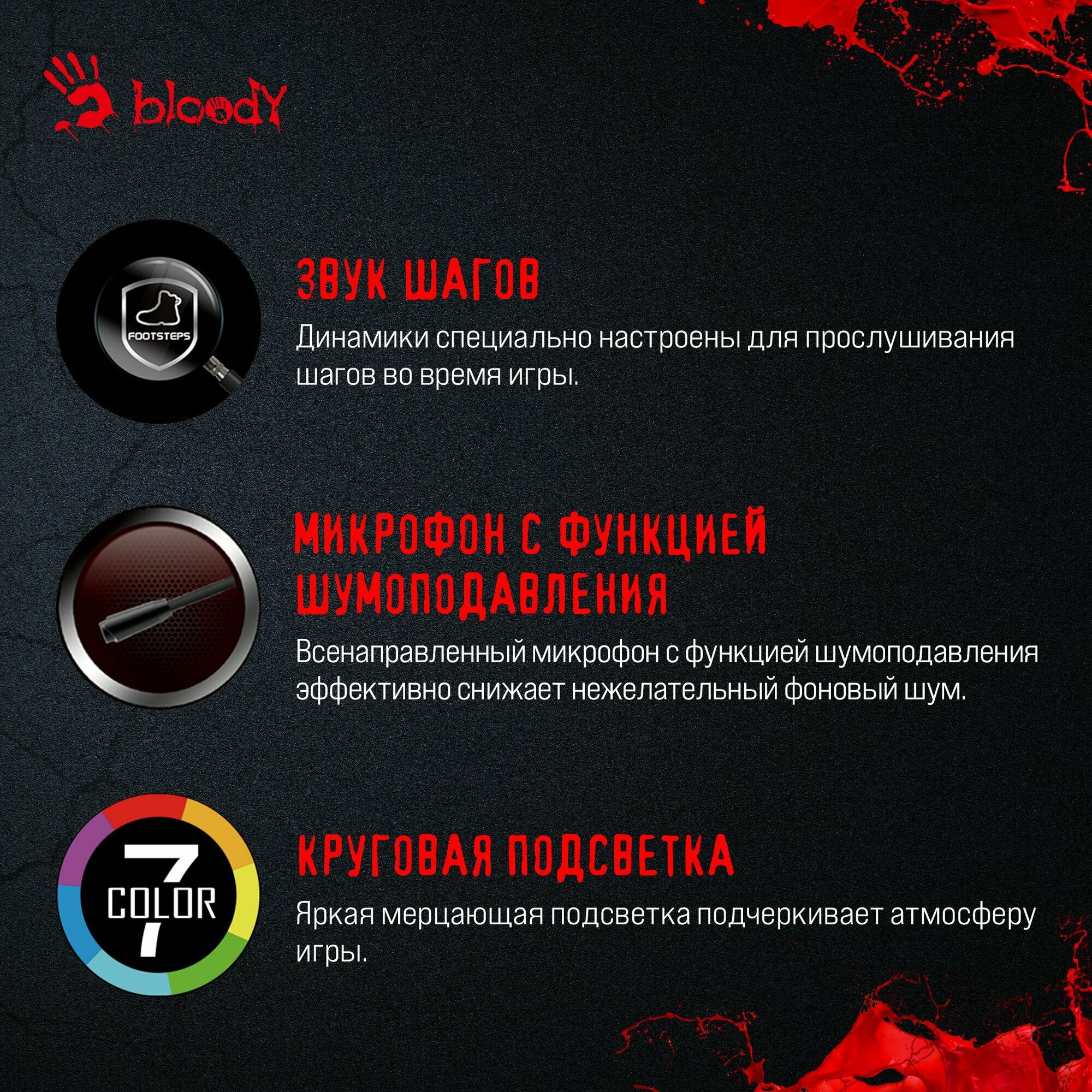 Гарнитура A4Tech Bloody G200s черный/красный .