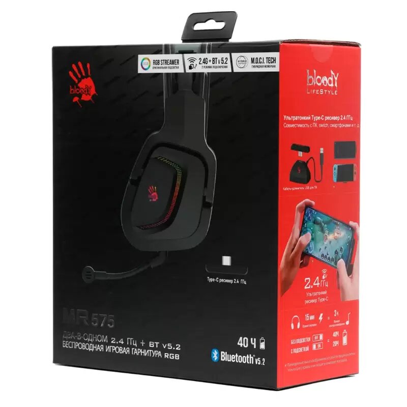 Наушники с микрофоном A4Tech Bloody MR575 черный BT оголовье (MR575) интересное: