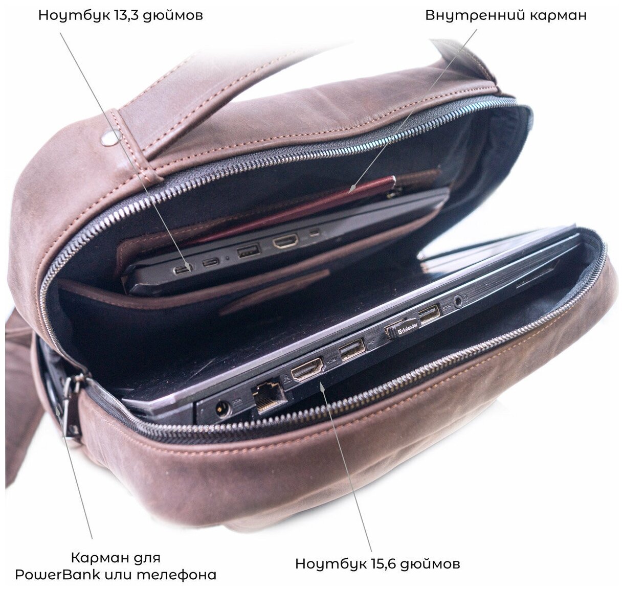 СохранитьРюкзак городской мужской / женский, кожаный / рюкзак для ноутбука до 16.1" Holt Brown by J.Audmorr интересное: