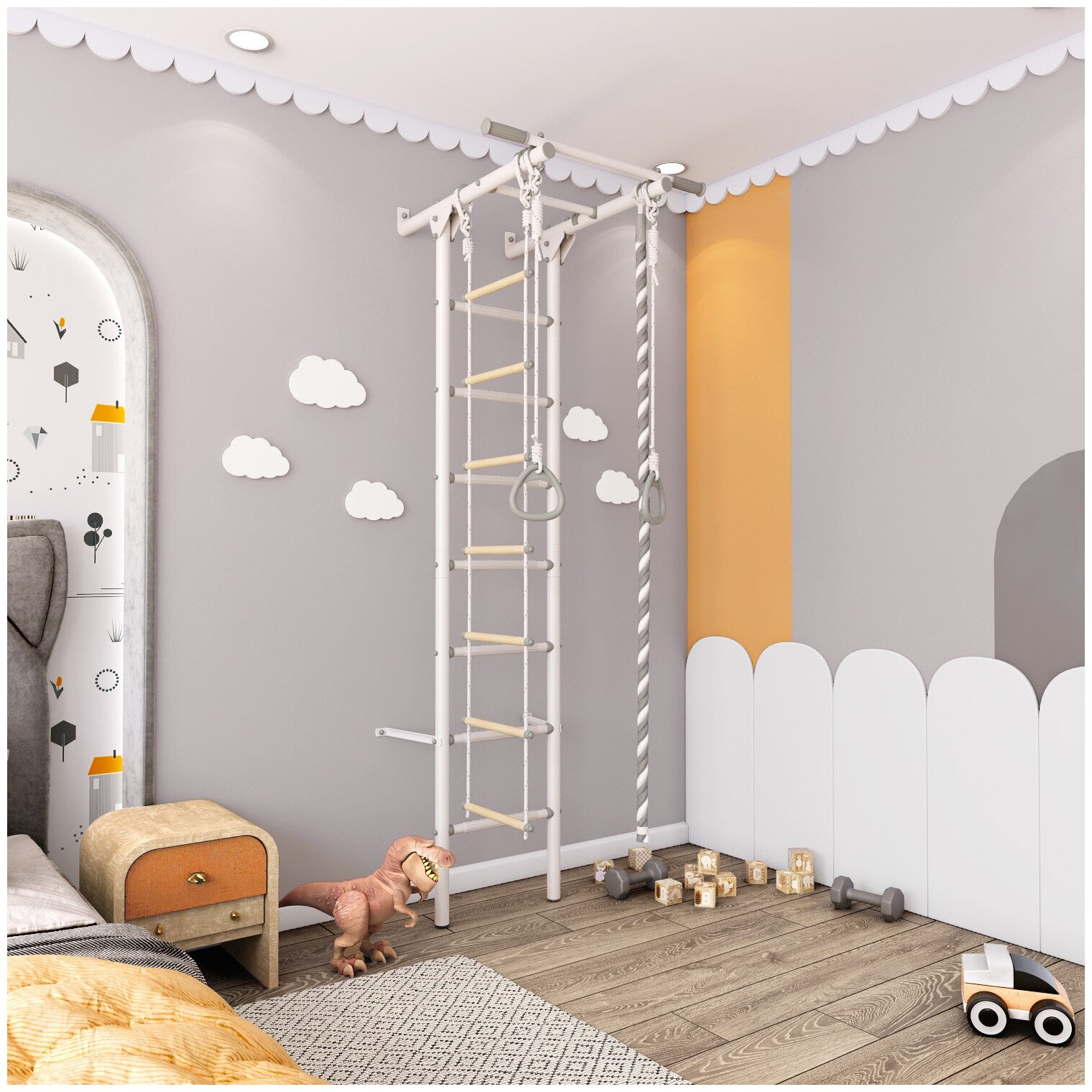 Шведская стенка Kampfer Union Ceiling (№1 Натуральный Стандарт белый турник)