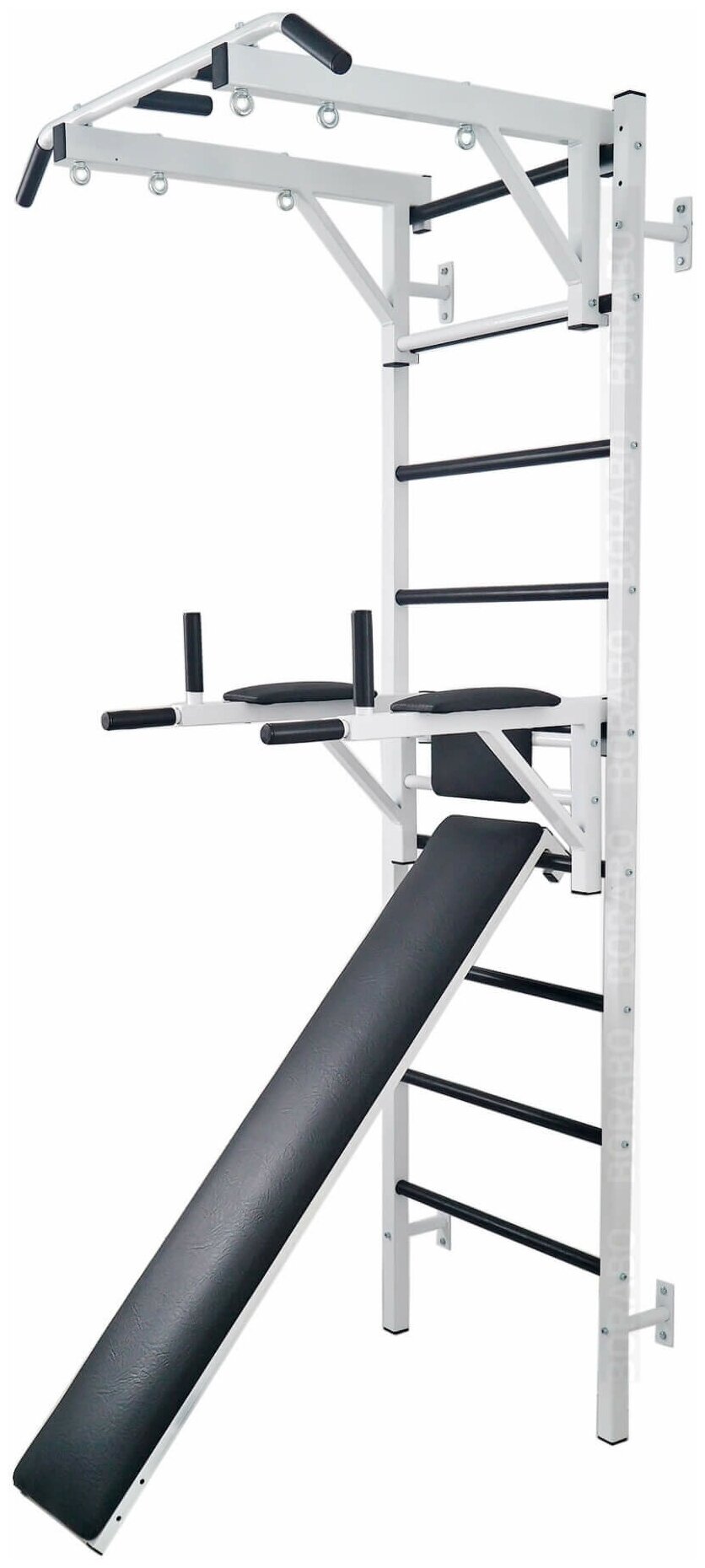 Купить Шведская стенка металлическая 240x71x16 см + Детский спортивный комплекс - Турник + Брусья Пресс + Доска наклонная Белая