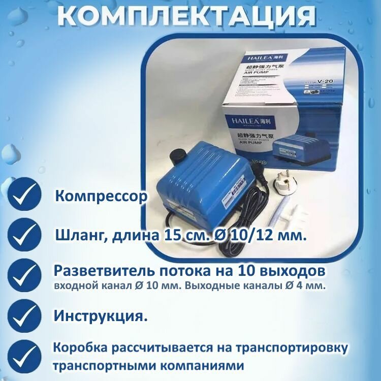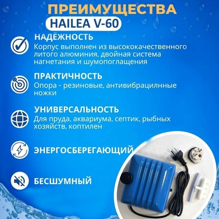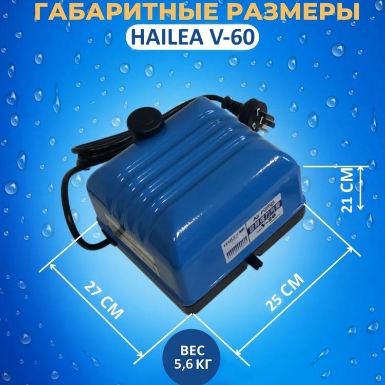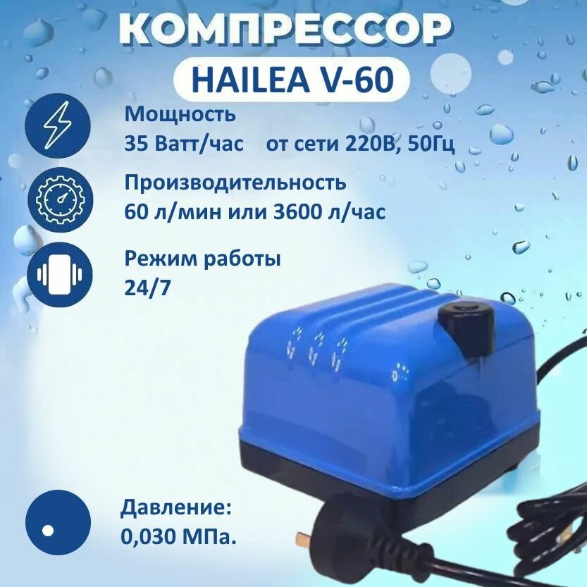 Компрессор Hailea V 60 (произв. 3600 лит/час. для акв. и пруда 3000 - 4500 л. для септика 3 м3)