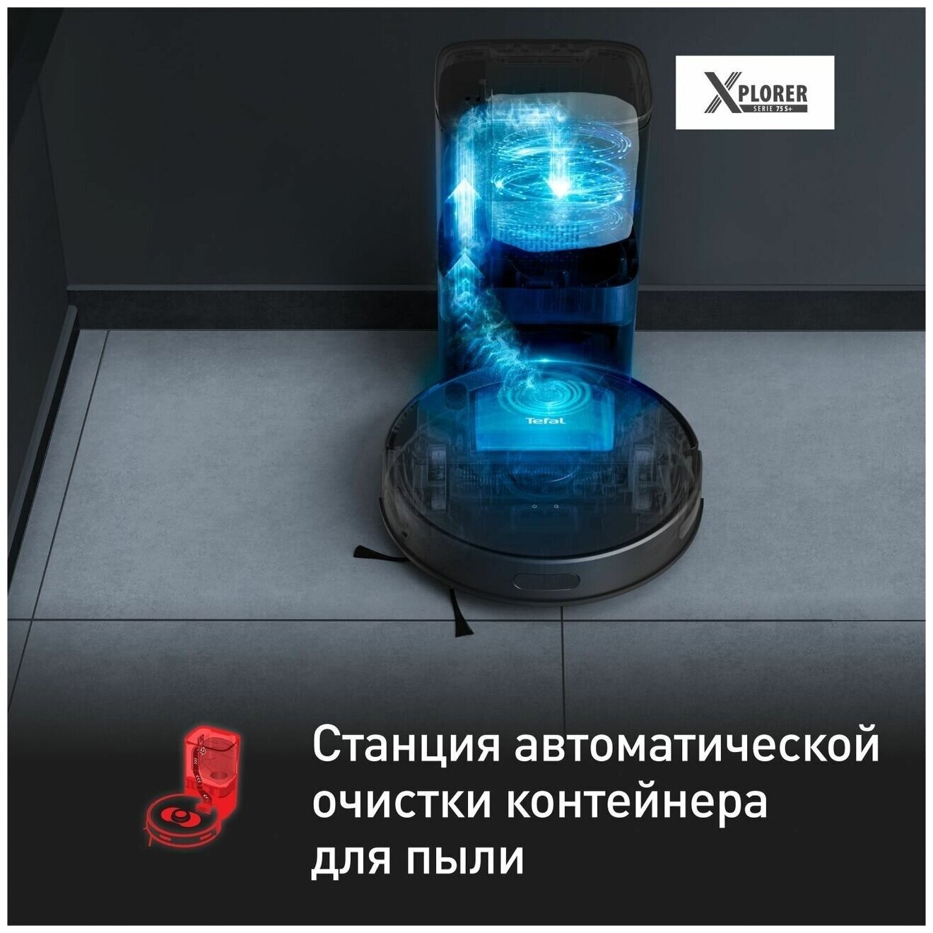 Робот-пылесос Tefal X-Plorer Serie 75 S+ RG8595WH, работает с Алисой, сухая и влажная уборка, чёрный