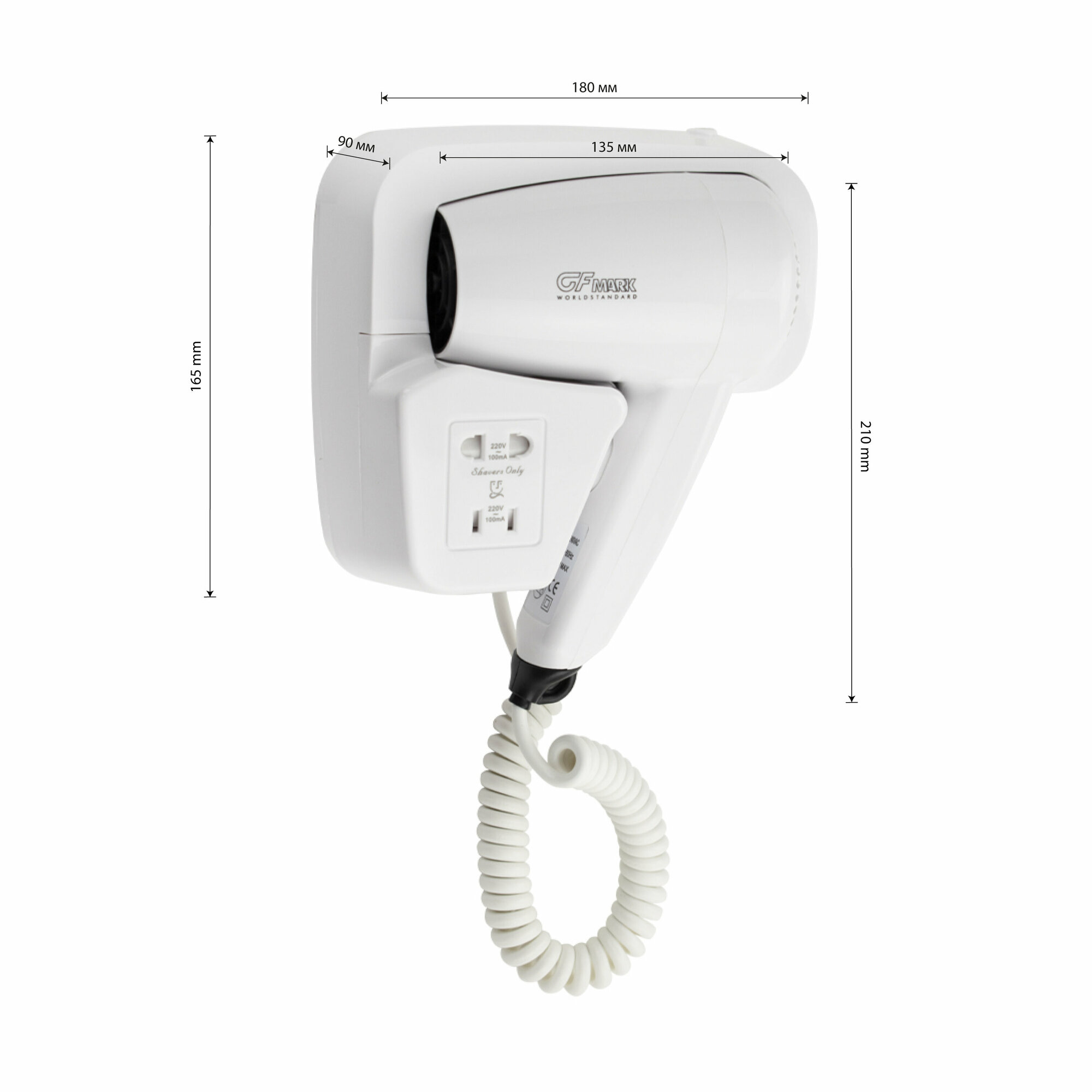 GFmark - Фен для волос в ванную комнату с боковым креплением, с розеткой 1200W