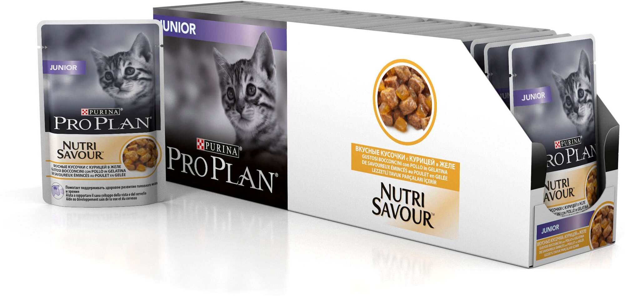 Влажный корм для котят Pro Plan Nutrisavour, с курицей 10 шт. х 85 г (кусочки в желе)