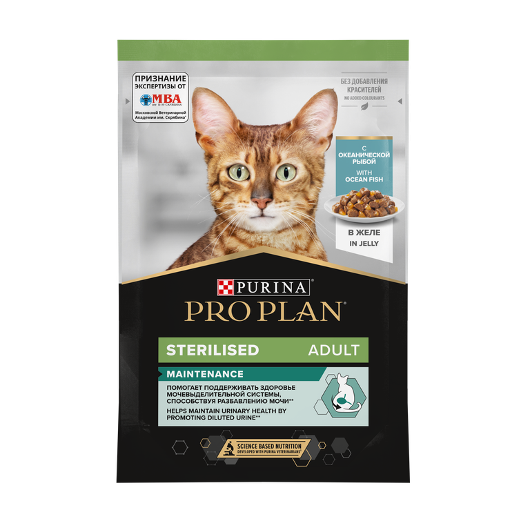 Влажный корм PRO PLAN для стерилизованных кошек, океаническая рыба в соусе, пауч, 85 г интересное: