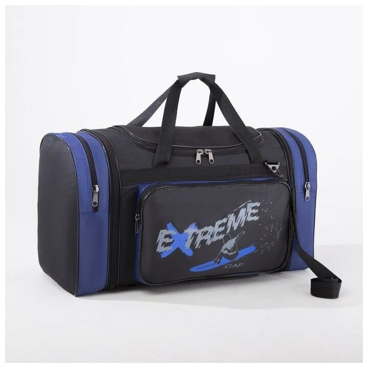 Сумка дорожная на молнии, с увеличением, 3 наружных кармана, длинный ремень, цвет чёрный - синий интересное: