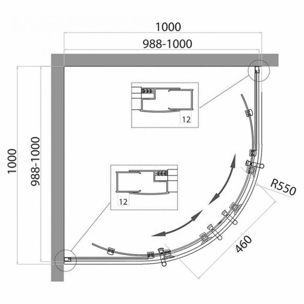 Душевой уголок BelBagno UNO-195-R-2-100-P-Cr 1000x1000x1950