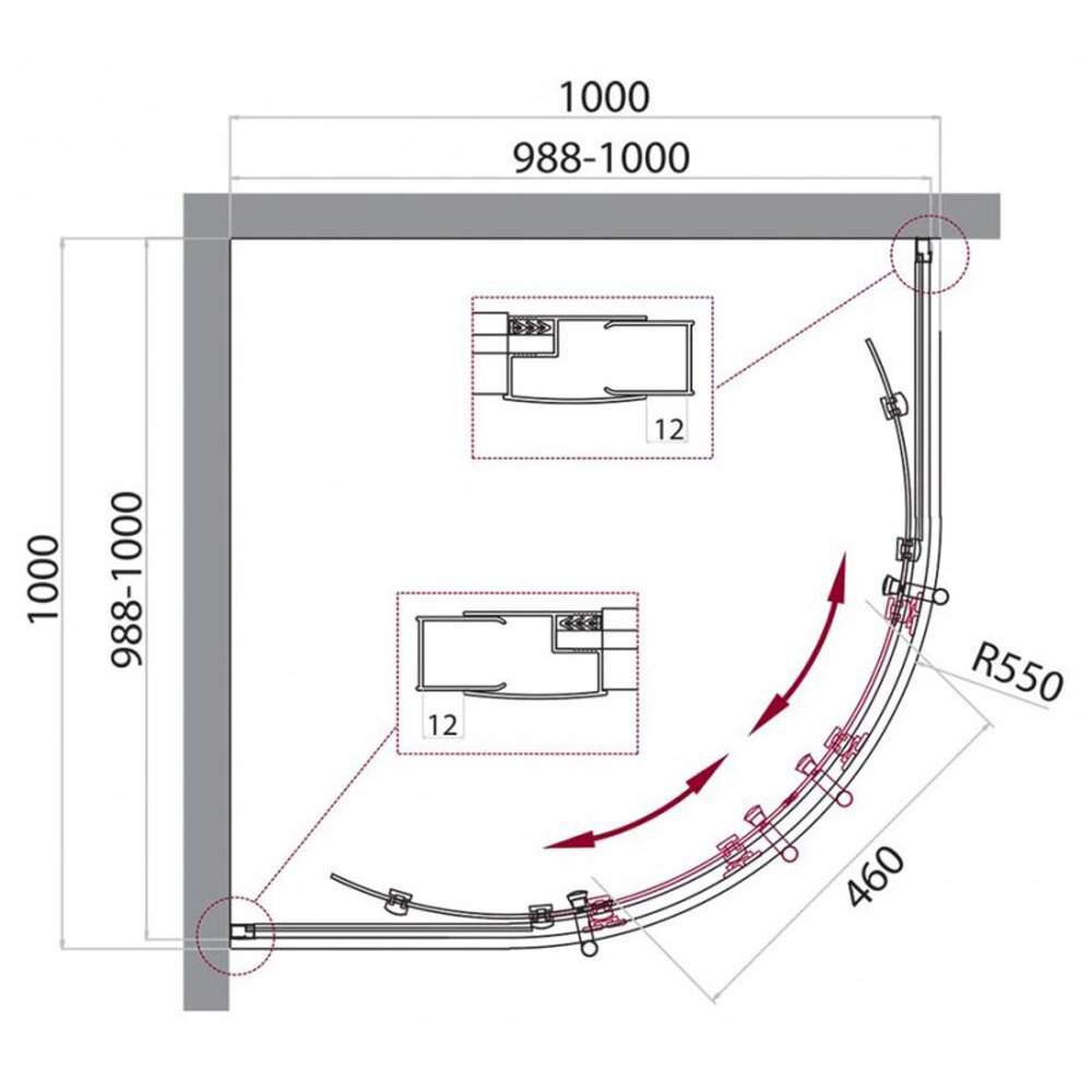 Душевой уголок UNO-195-R-2-100-P-Cr 1000x1000x1950