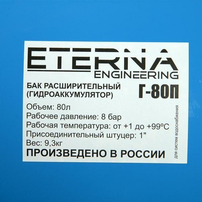 Гидроаккумулятор ETERNA Г-80П, для систем водоснабжения, горизонтальный, 80 л интересное: