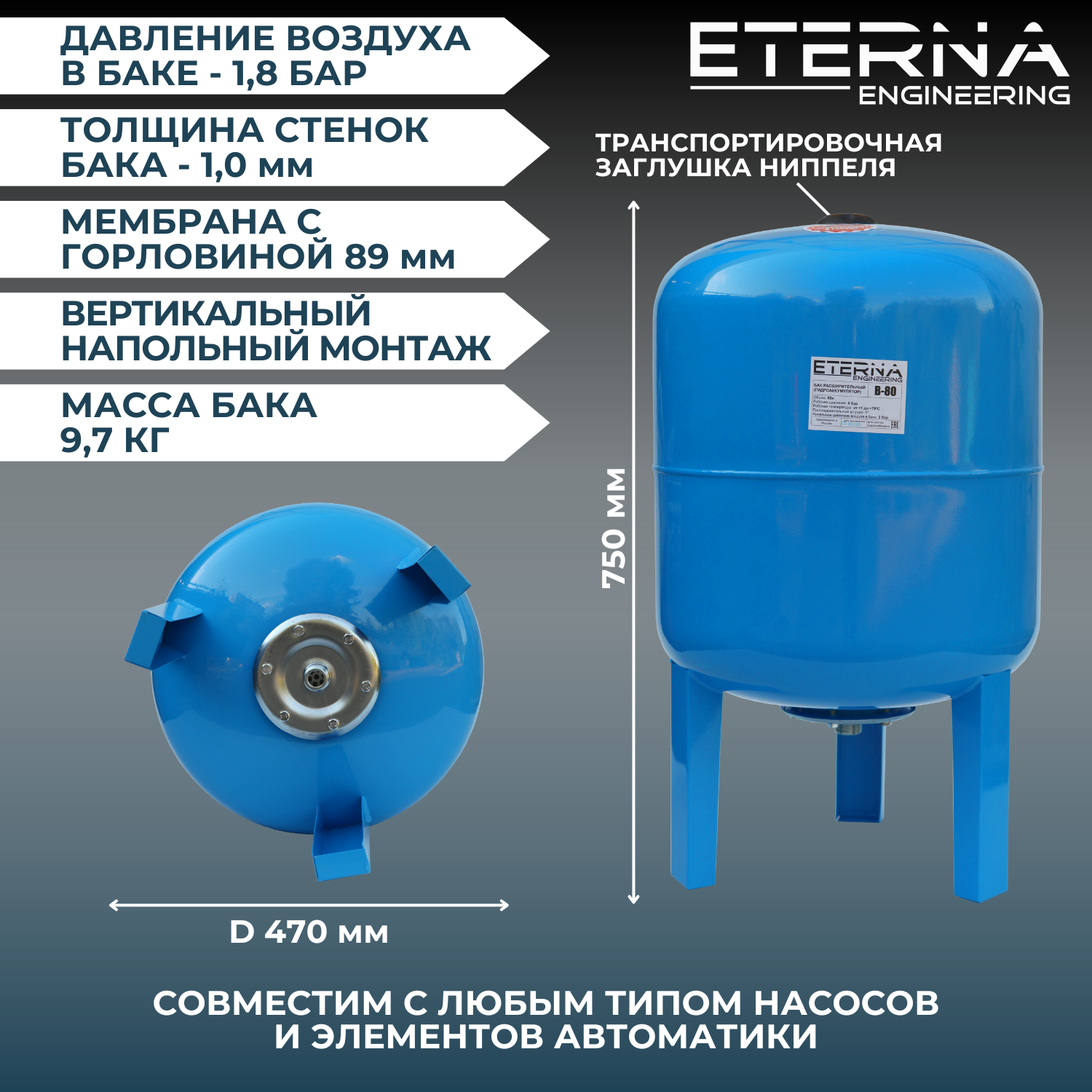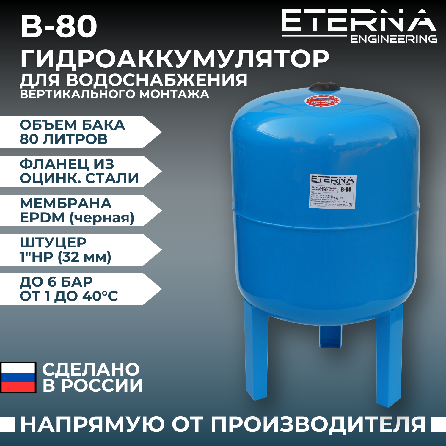Гидроаккумулятор для водоснабжения ETERNA В-80 (80 л, 1", вертикальный, оцинк. фланец снизу) интересное: