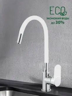 Смеситель для кухни однорычажный Feinise высокий гибкий излив на гайке хром/белый FEINISE S49114R6-7 интересное: