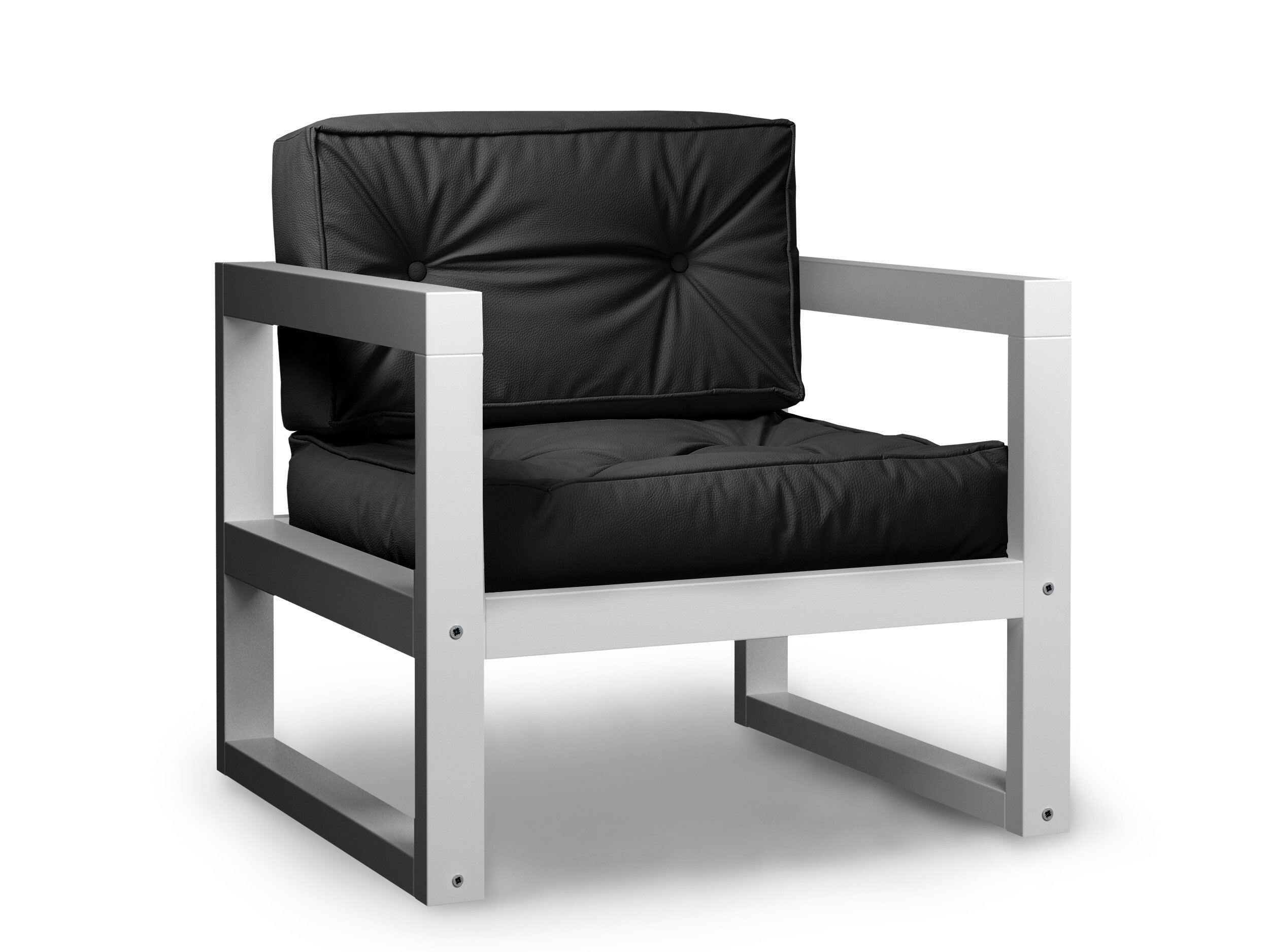 Кресло астер, черная-белая эмаль, кожзам, деревянное, мягкое, для дачи, для кафе и бара, на веранду, в террасу, для бани