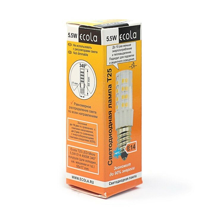 Купить Ecola Лампа светодиодная Ecola, T25, E14, 5.5 Вт, 4000 K, 340°, для холодильников и швейных машин