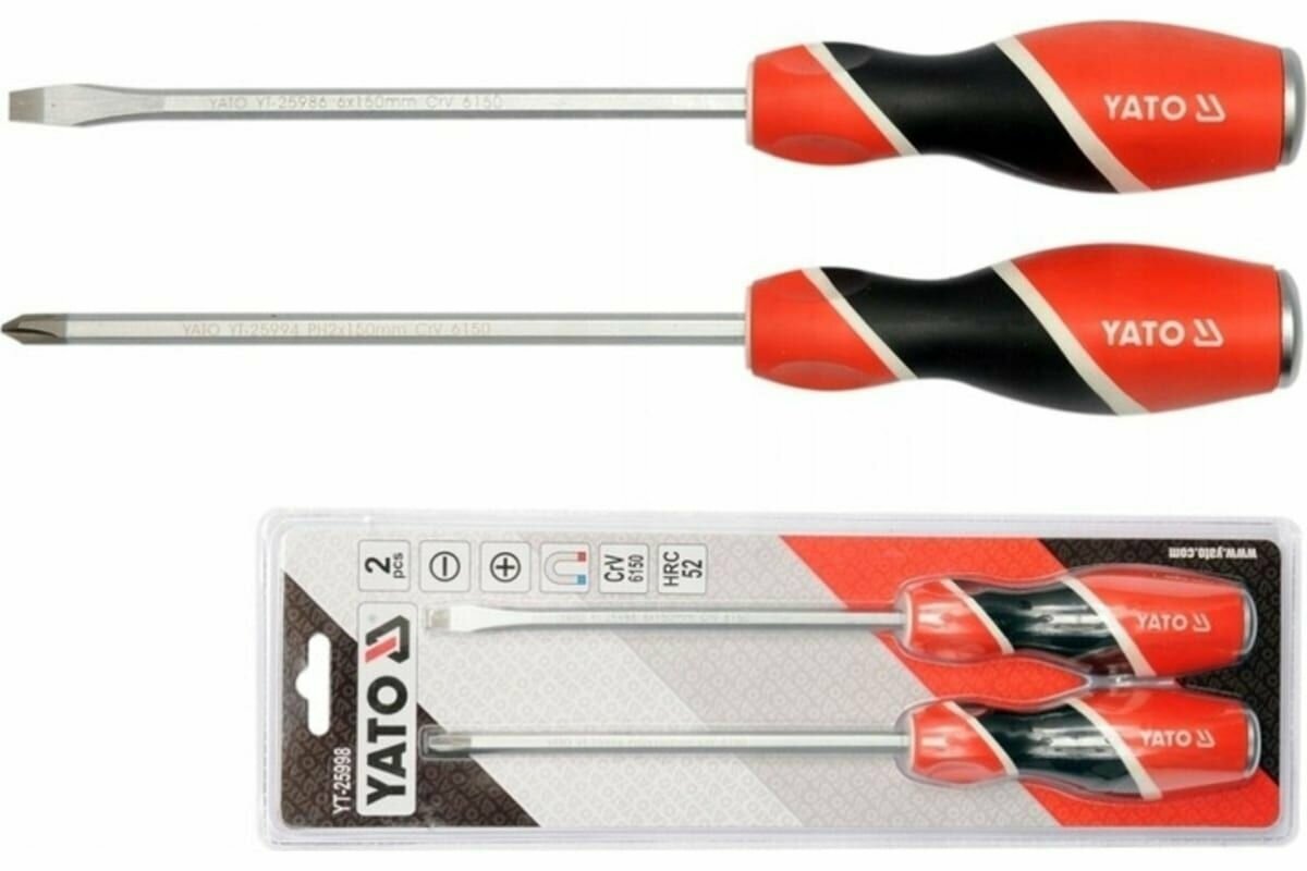 Набор Отверток Ударных Магнитных, 2 Пр: Ph2 X 150 Мм, Sl6 X 150 Мм YATO арт. YT-25998 интересное: