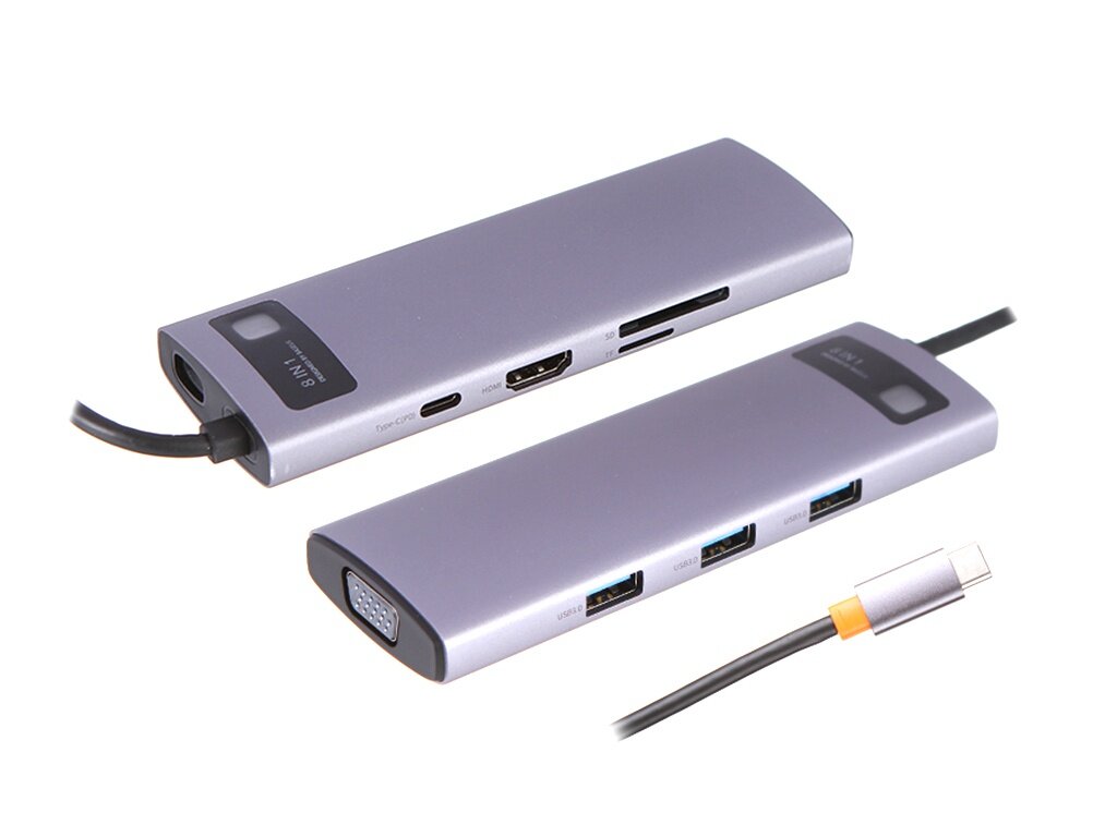 Купить Хаб USB Baseus Metal Gleam Series 8-in-1 Multifunctional Type-C HUB Docking Station Gray WKWG050013