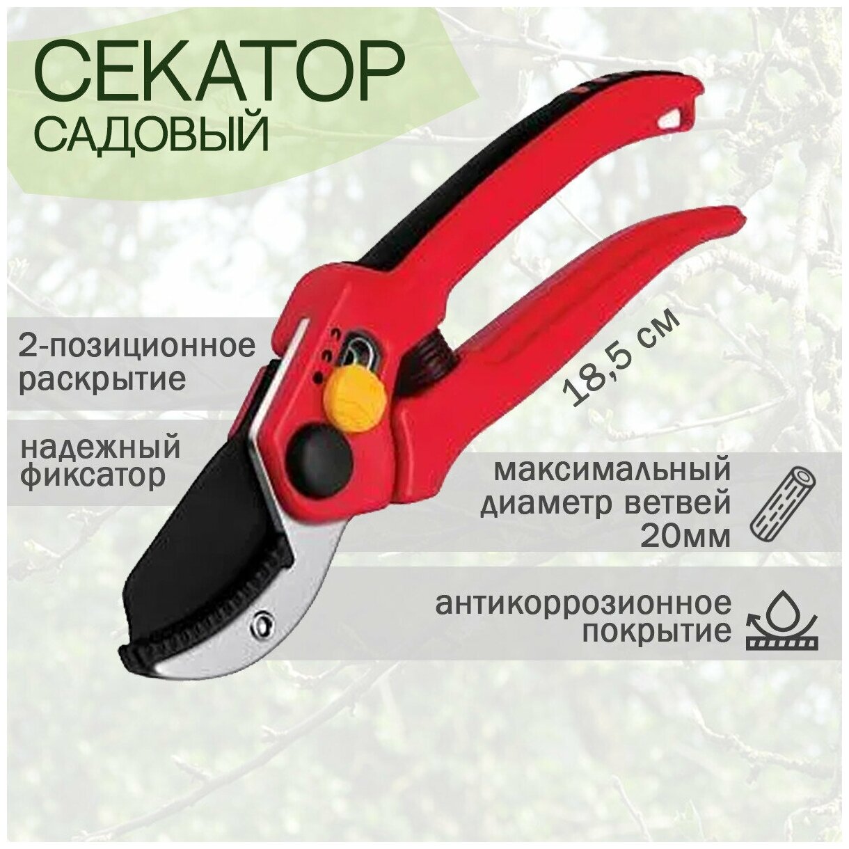 Секатор с наковальней D реза 22мм/Listok - 2 шт
