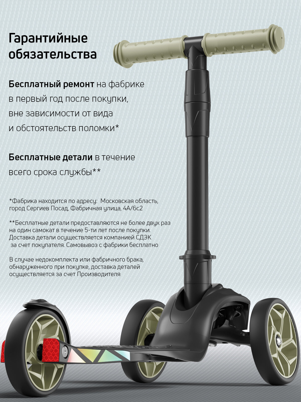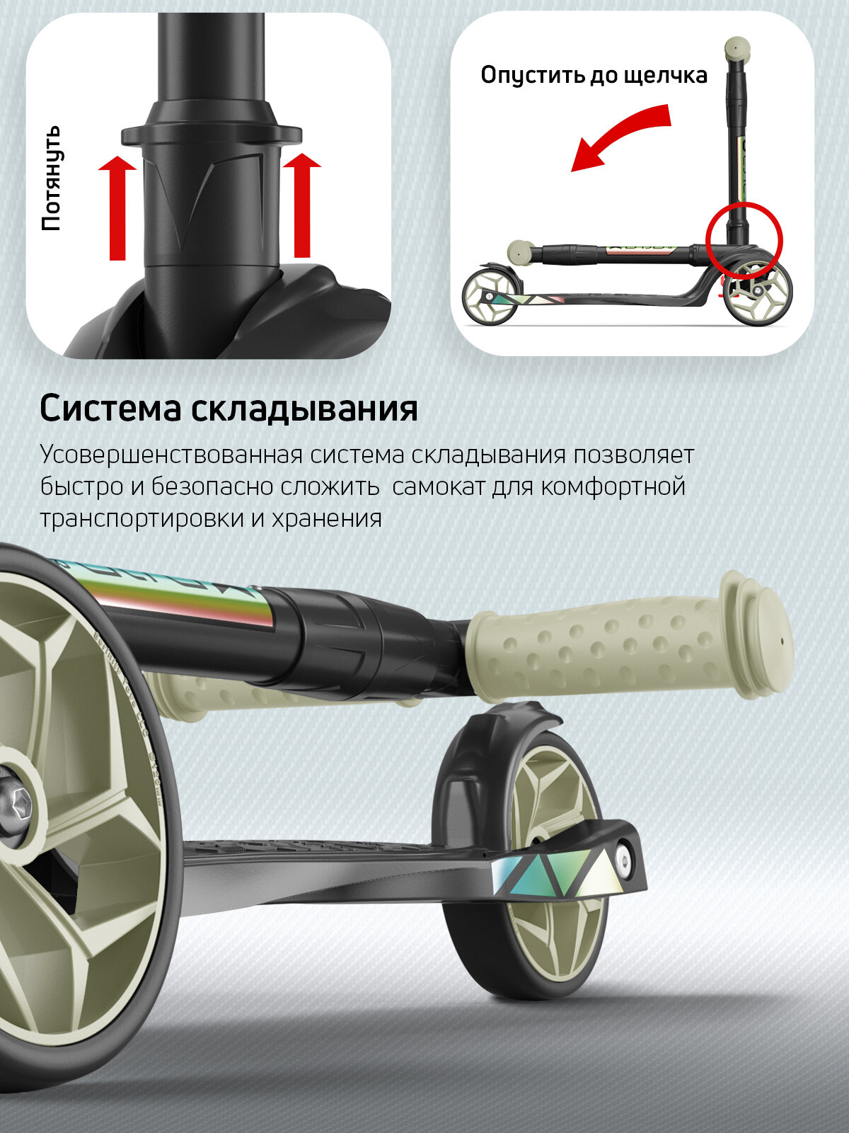 Самокат, самокат трехколесный детский, с цветными колесами и цветными ручками, Buggy Boom Alfa Mini R, зеленый флюр