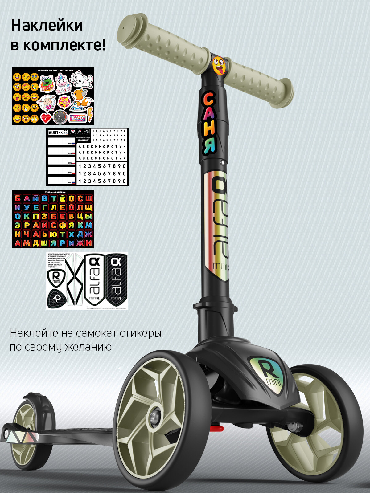 Самокат детский трехколесный с наклейками Alfa Mini R Black от Buggy Boom