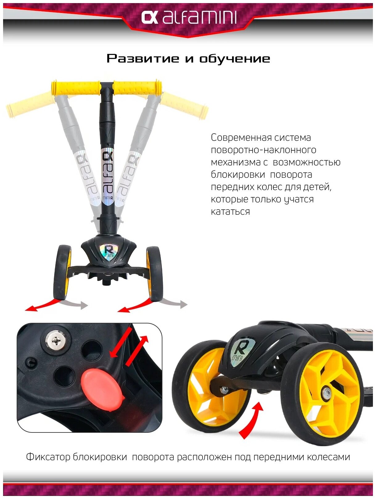 Самокат Alfa Mini R Black (красный 59) с не светящимися цветными колесами в коробке. арт. 004-3159