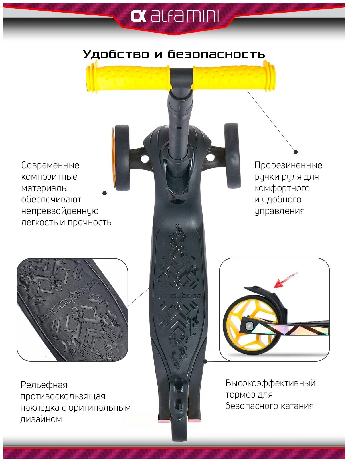 Самокат детский трехколесный с наклейками Alfa Mini R Black от Buggy Boom