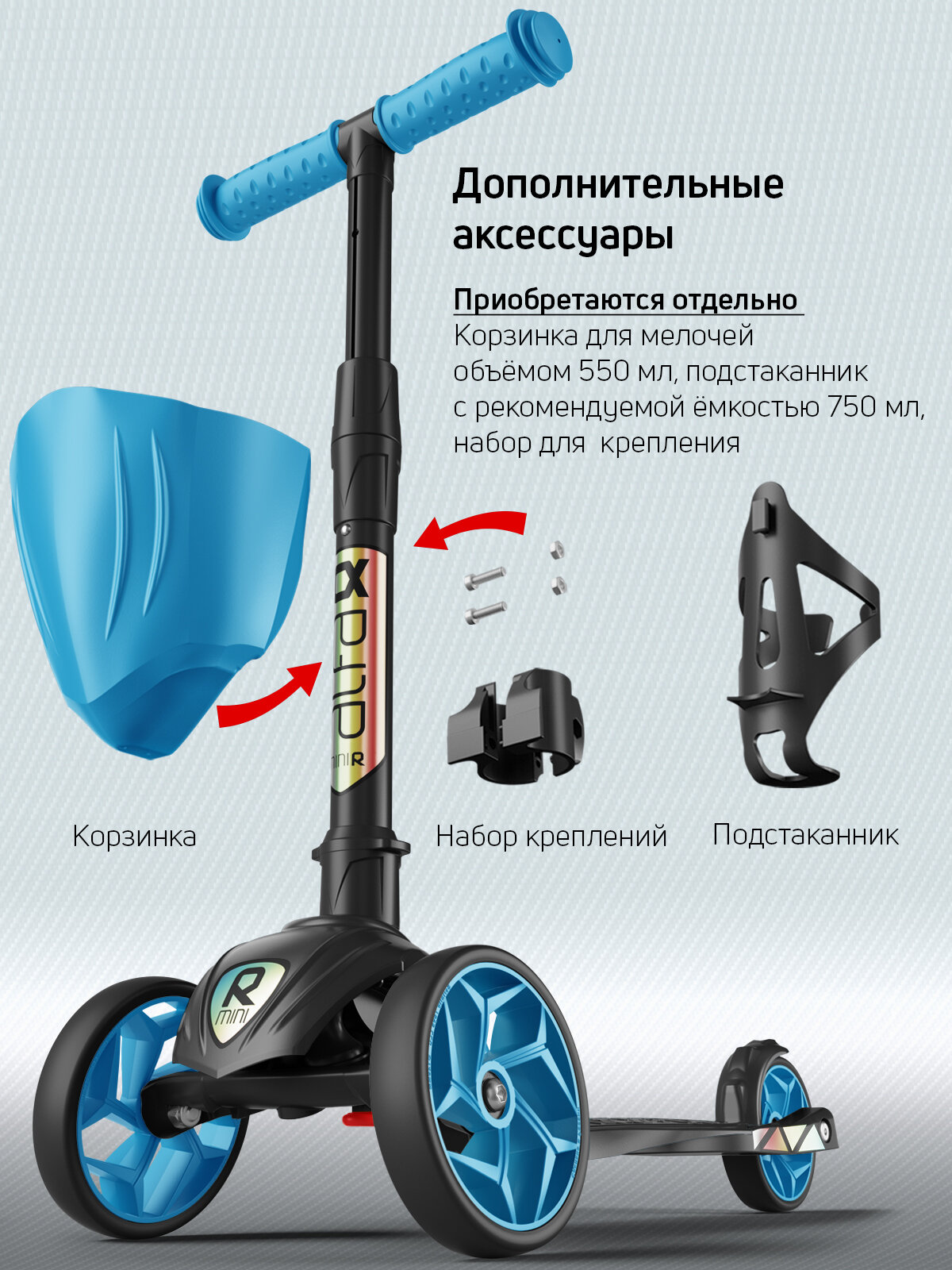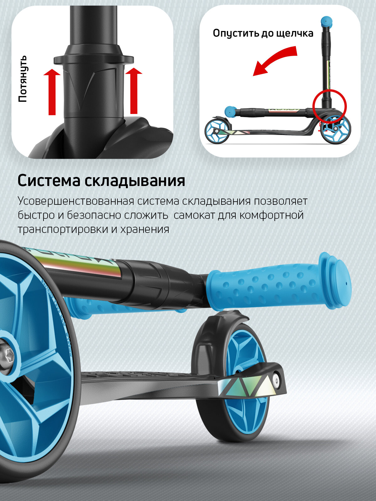 СохранитьСамокат, самокат трехколесный детский, с цветными колесами и цветными ручками, Buggy Boom Alfa Mini R, голубой флюр интересное: