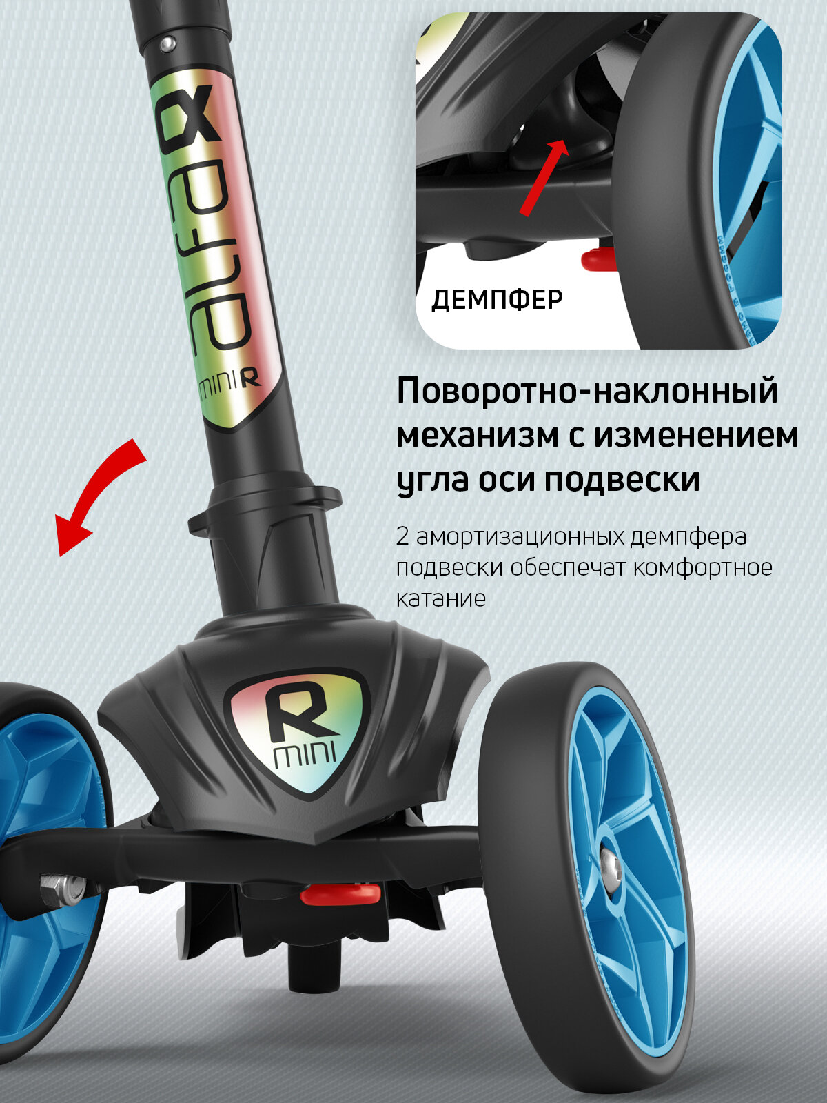 Самокат, самокат трехколесный детский, с цветными колесами и цветными ручками, Buggy Boom Alfa Mini R, синий