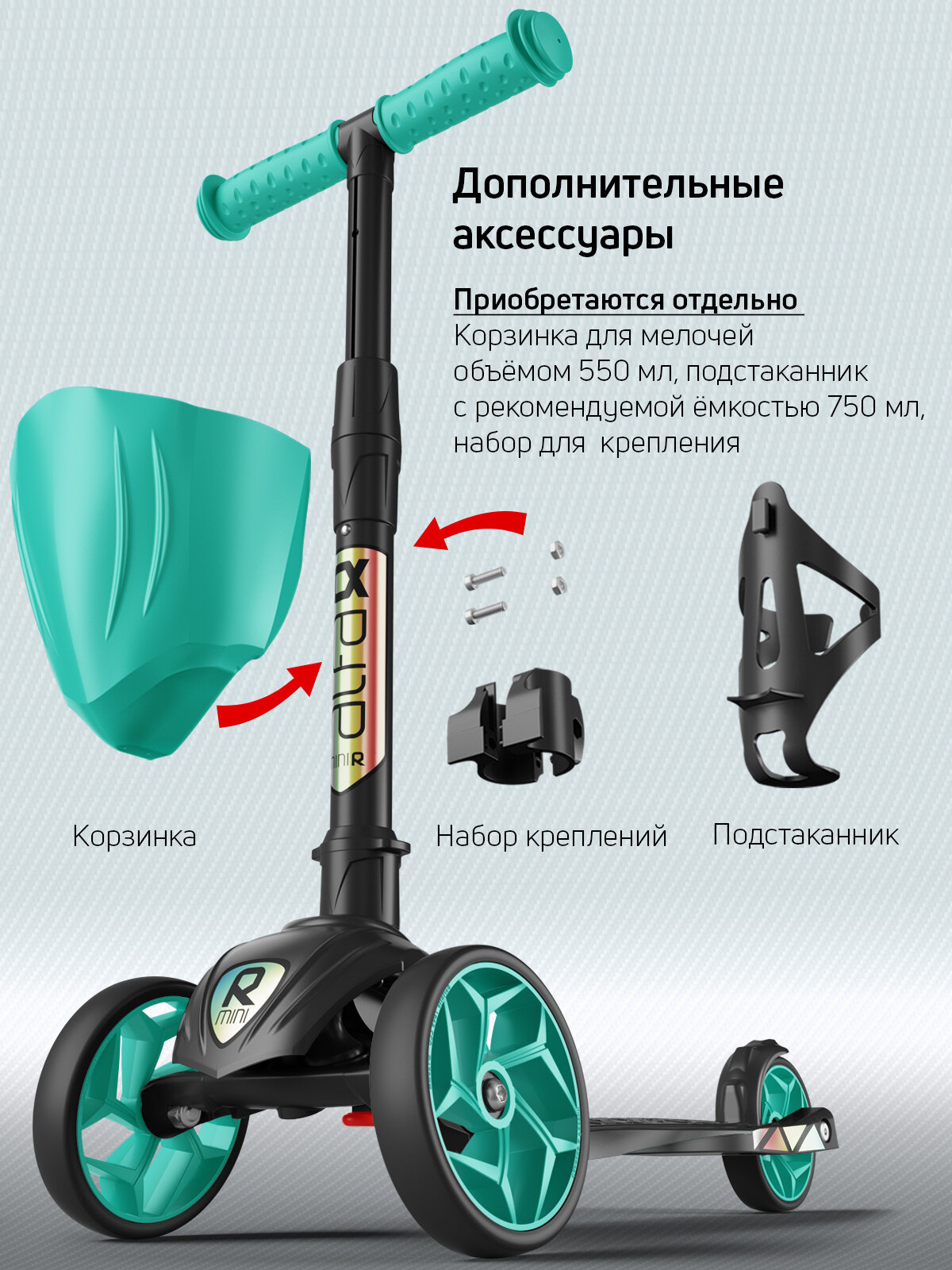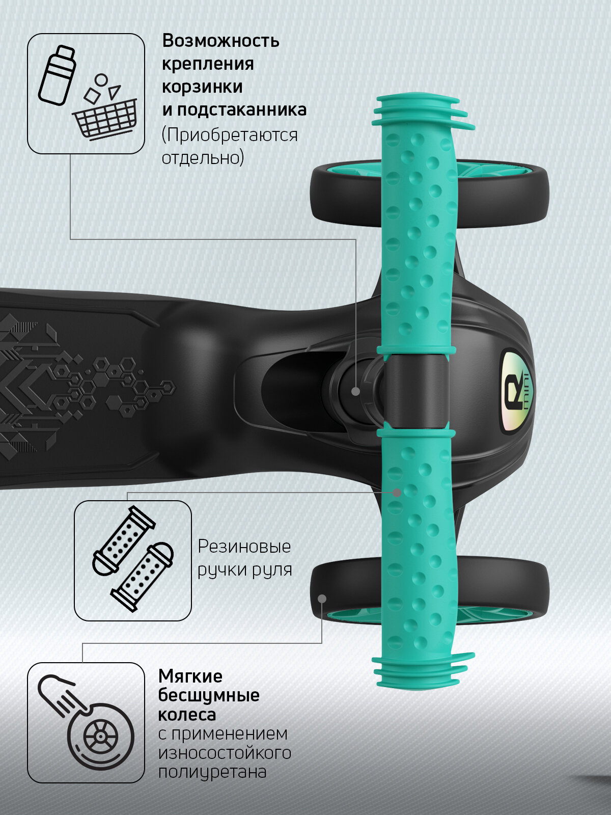 СохранитьСамокат, самокат трехколесный детский, с цветными колесами и цветными ручками, Buggy Boom Alfa Mini R, тифани интересное: