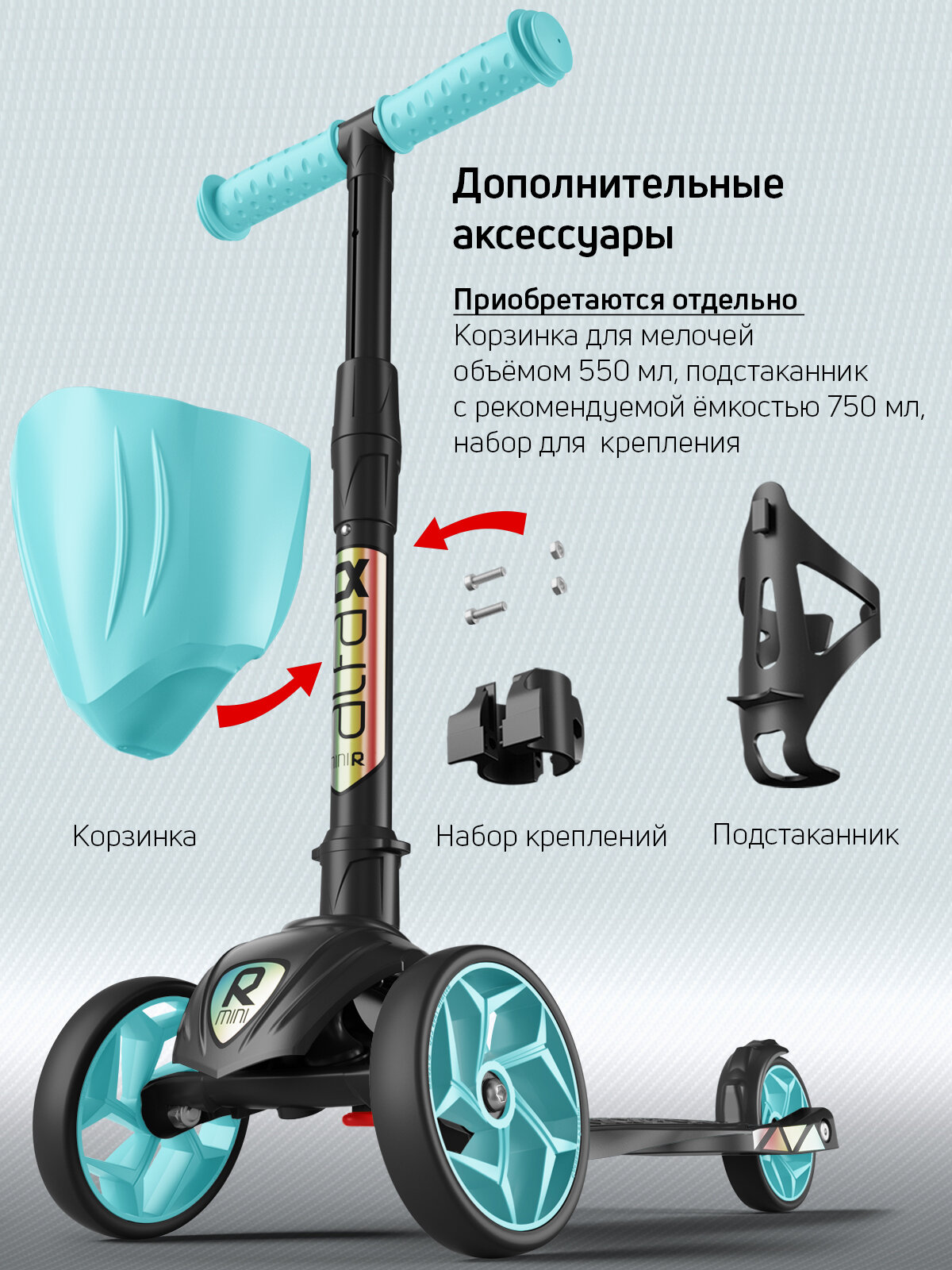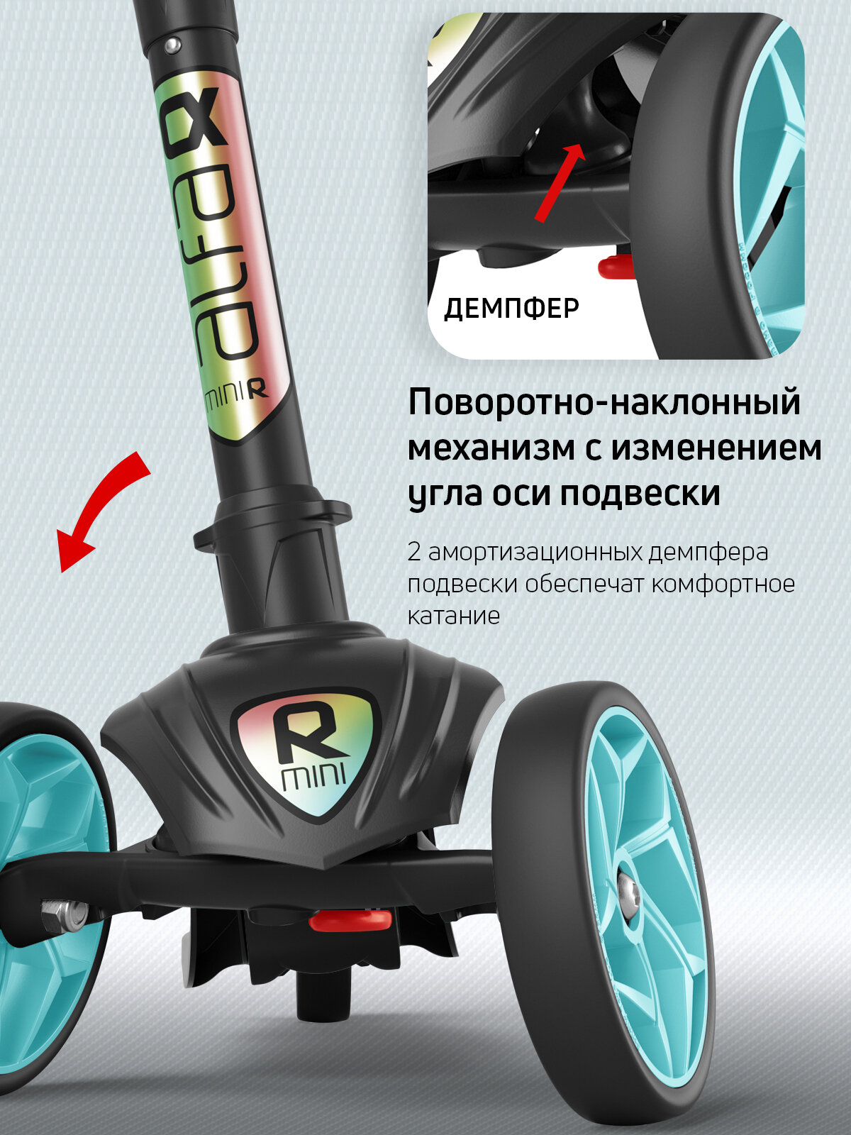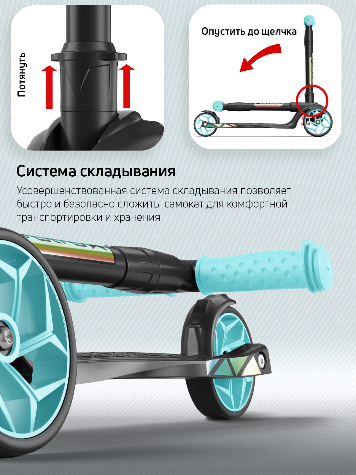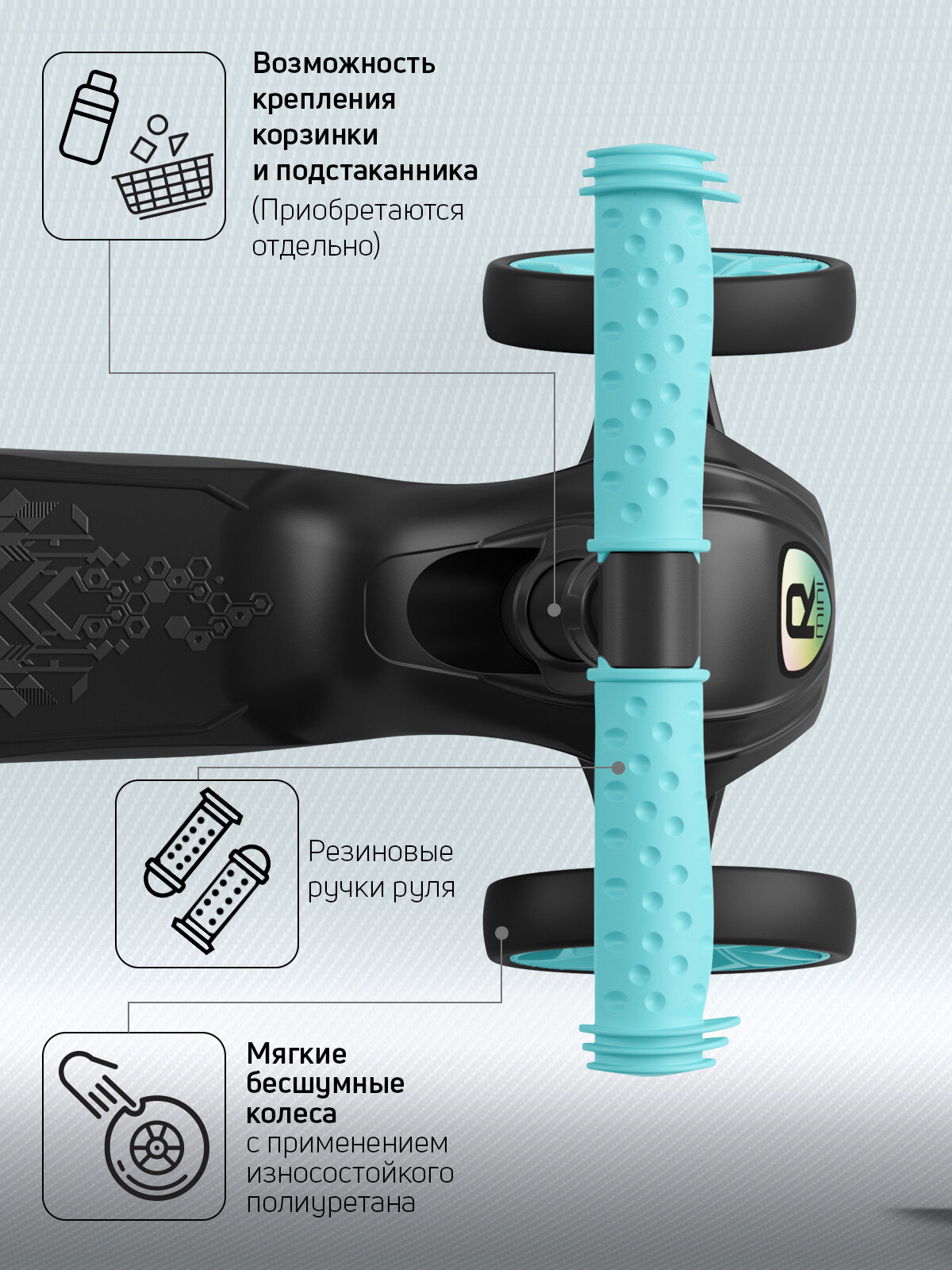 Самокат, самокат трехколесный детский, с цветными колесами и цветными ручками, Buggy Boom Alfa Mini R, тифани