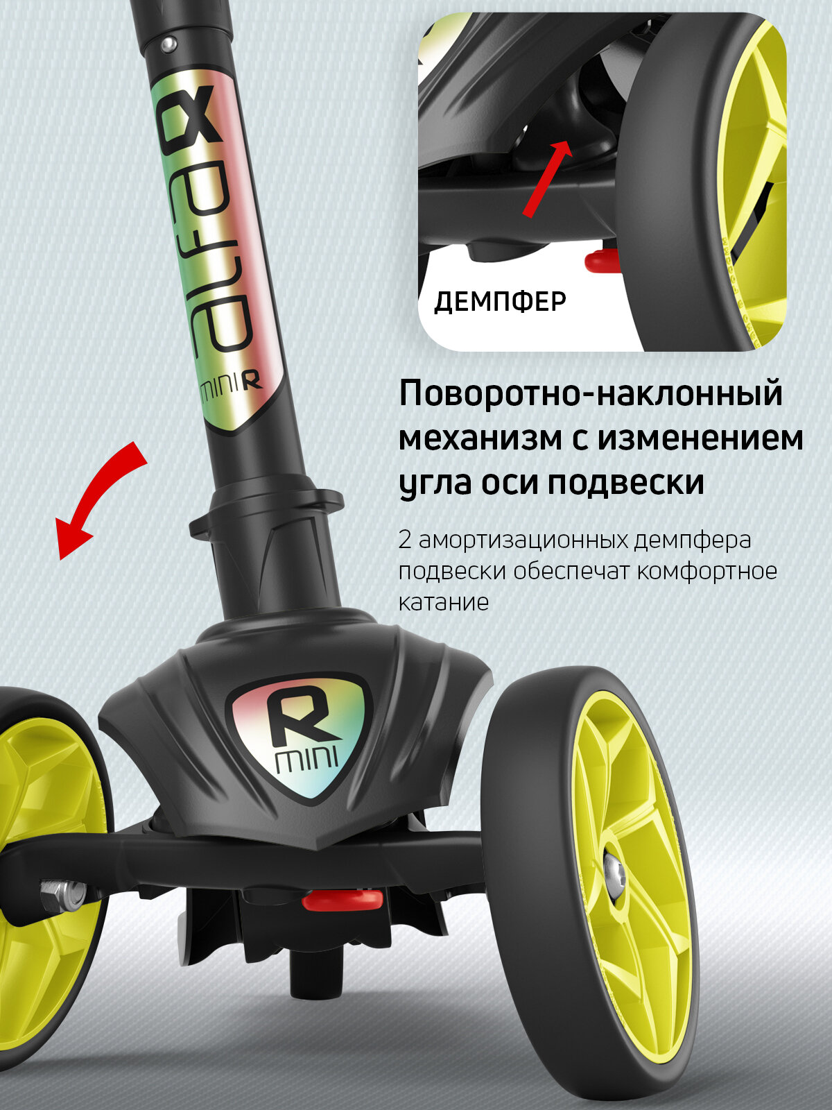 Купить Самокат, самокат трехколесный детский, с цветными колесами и цветными ручками, Buggy Boom Alfa Mini R, лимонный флюр