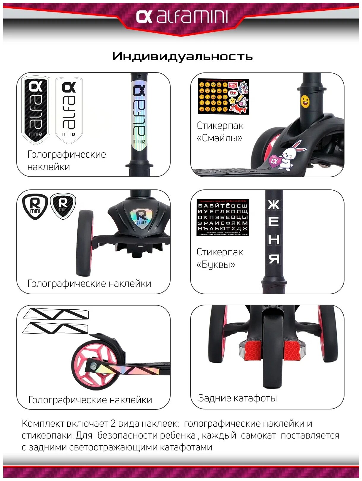 Самокат детский трехколесный с наклейками Alfa Mini R Black от Buggy Boom