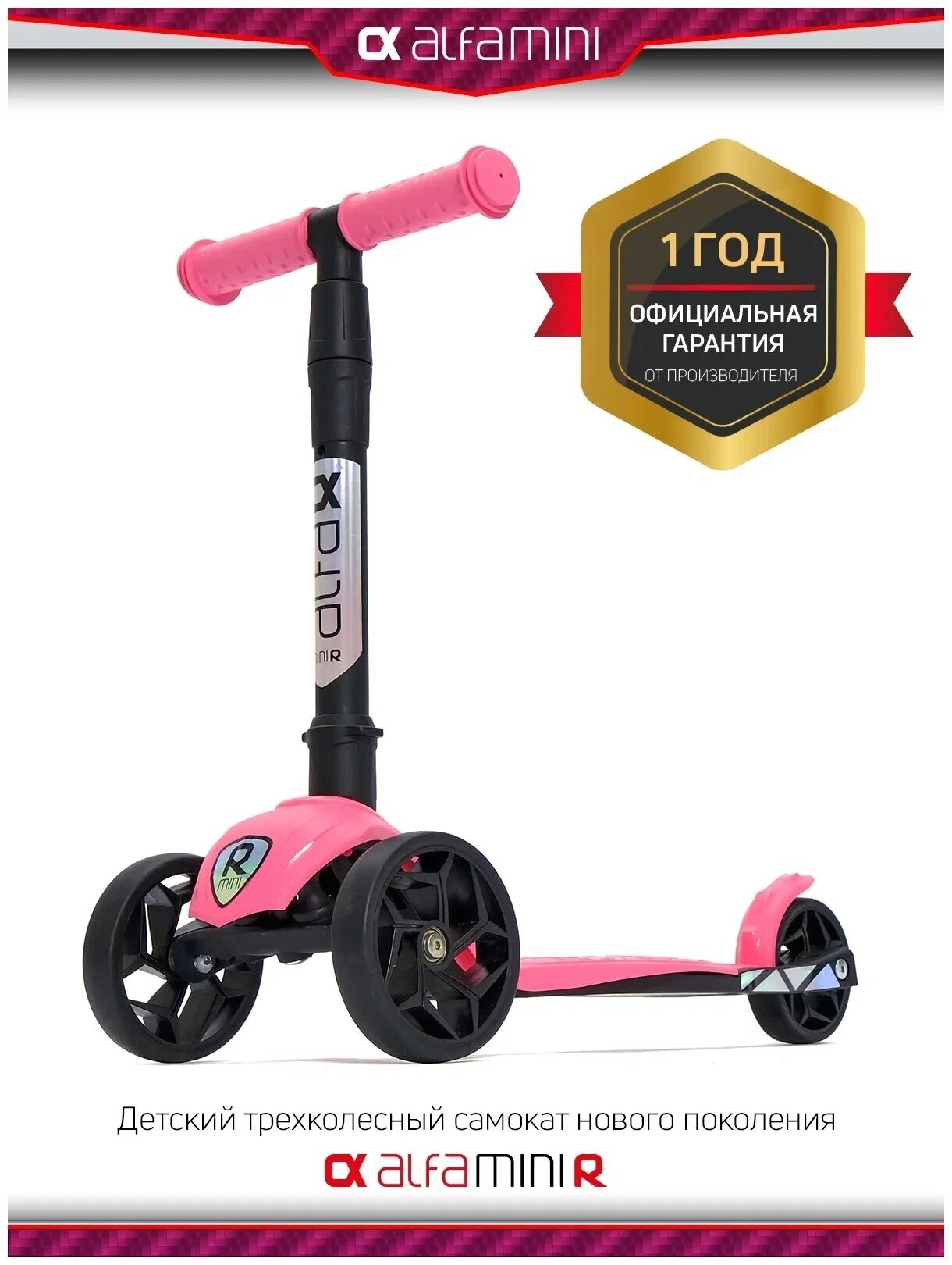 Самокат Alfa Mini R Black (красный 59) с не светящимися цветными колесами в коробке. арт. 004-3159