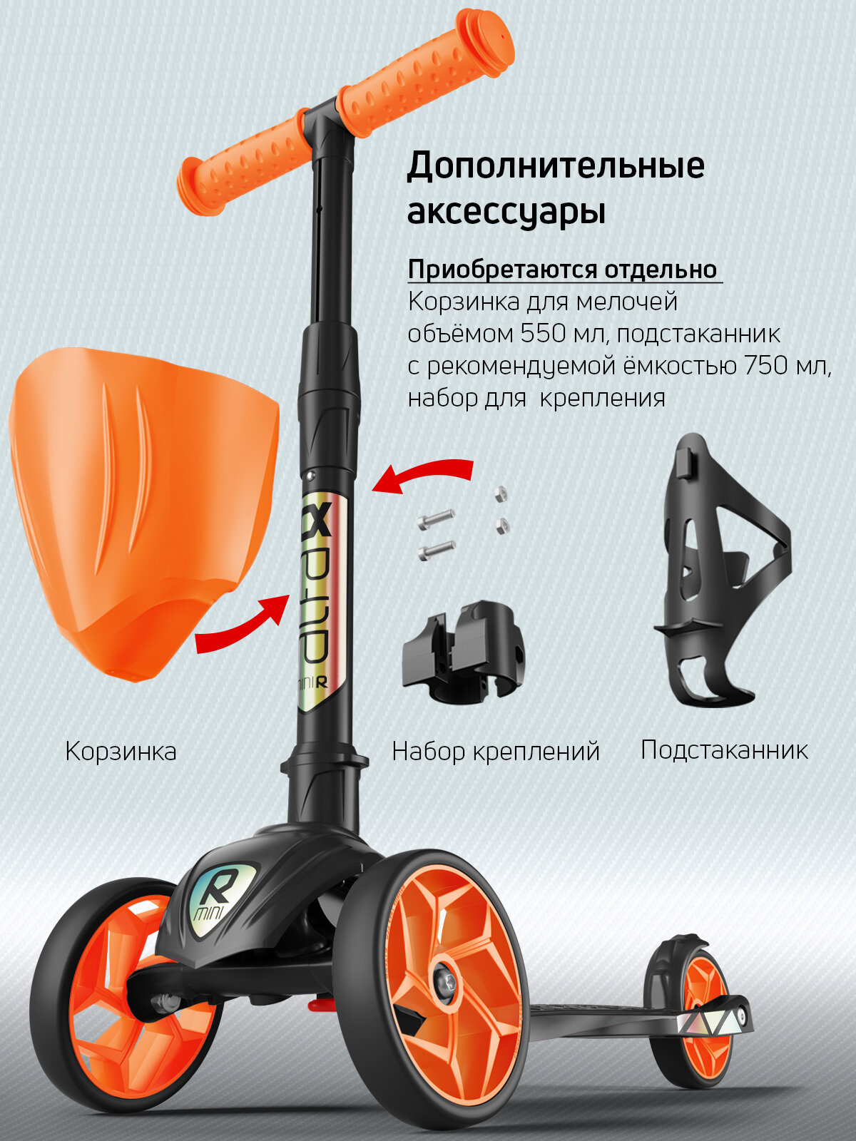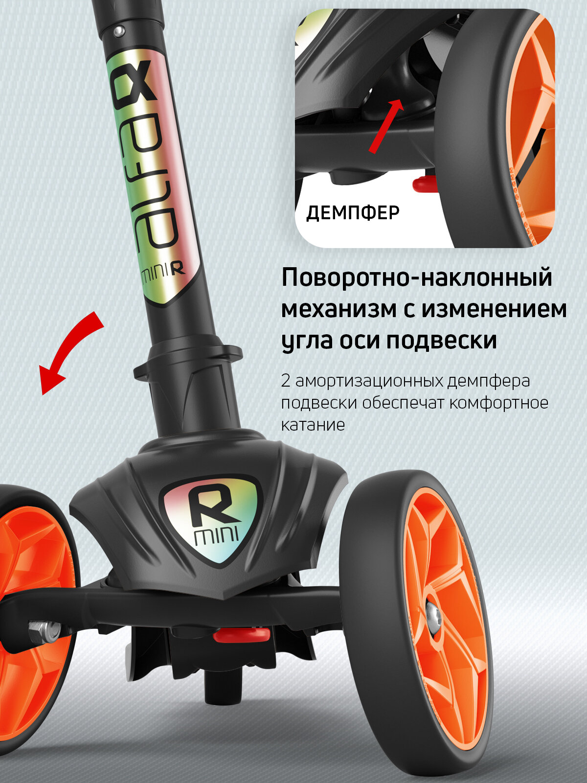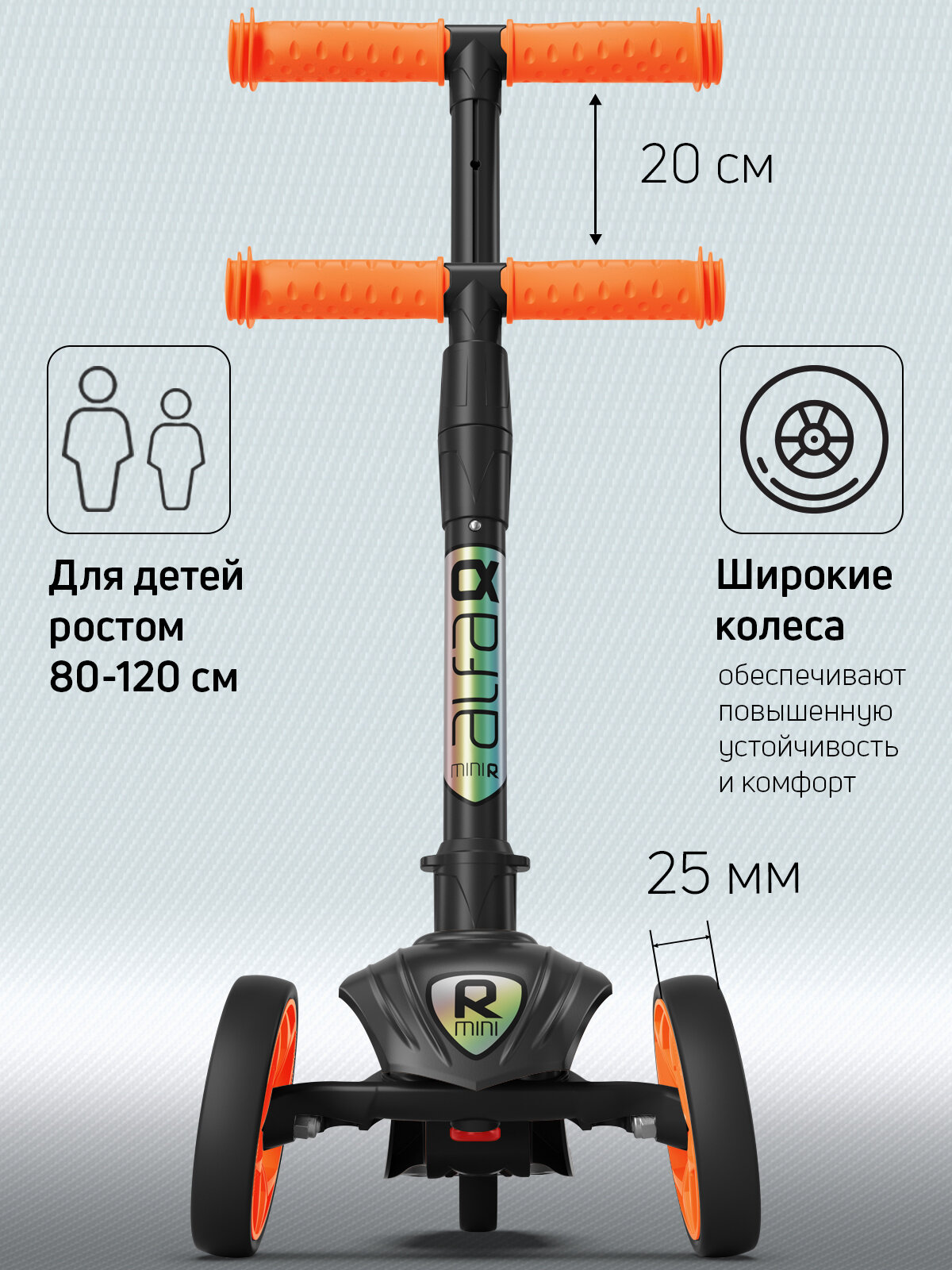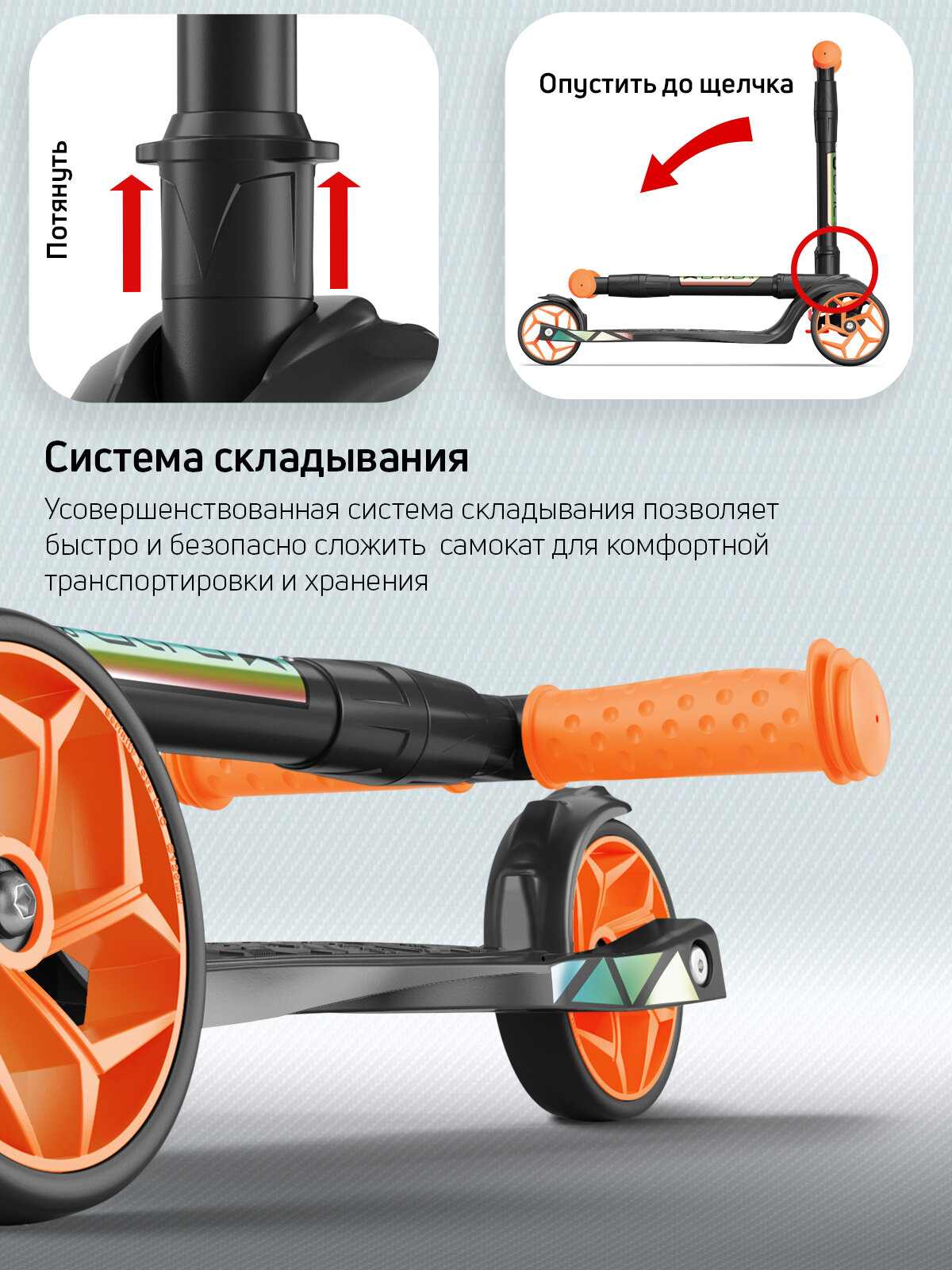 Самокат, самокат трехколесный детский, с цветными колесами и цветными ручками, Buggy Boom Alfa Mini R, оранжевый