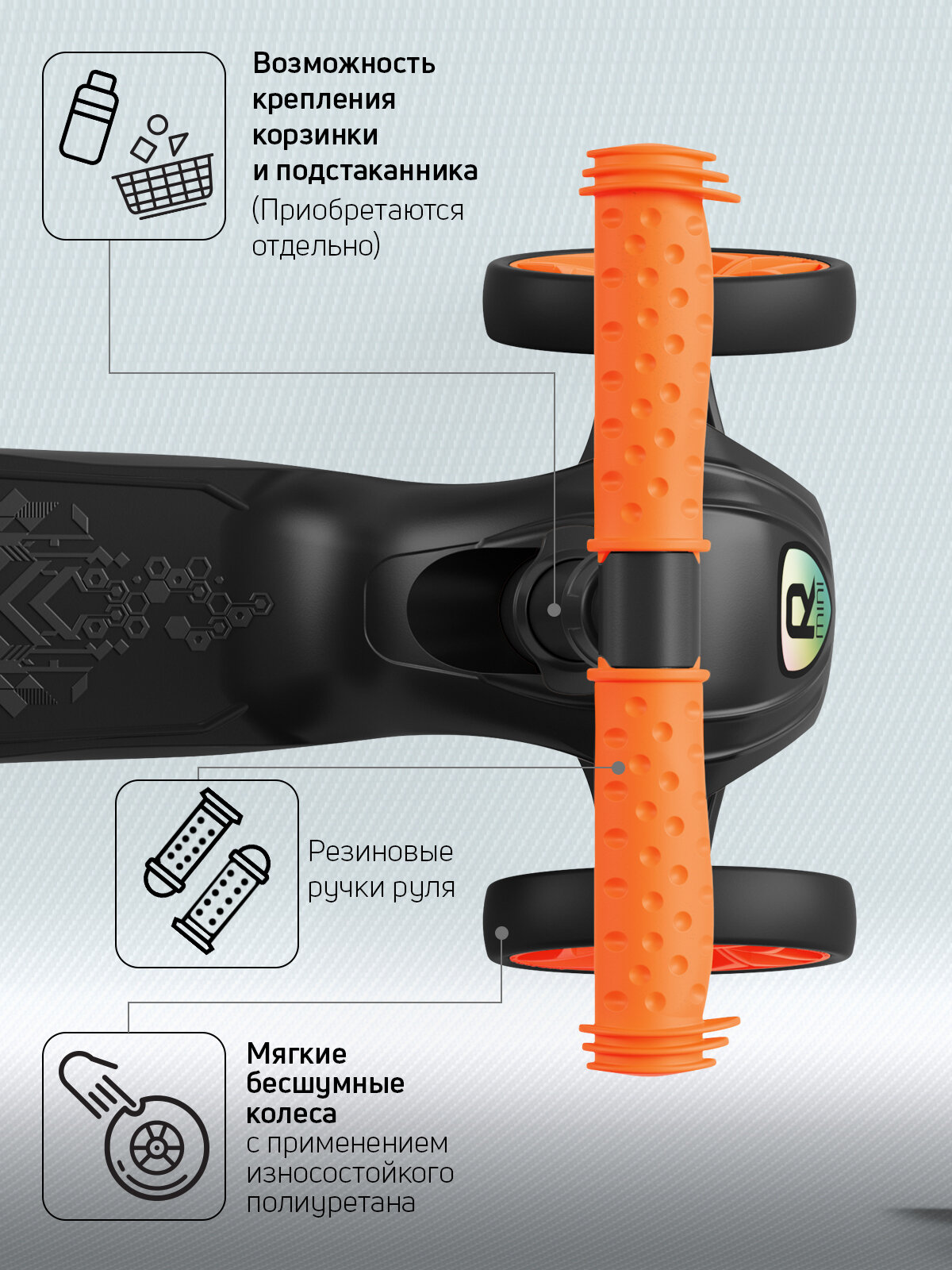 СохранитьСамокат, самокат трехколесный детский, с цветными колесами и цветными ручками, Buggy Boom Alfa Mini R, морковный интересное: