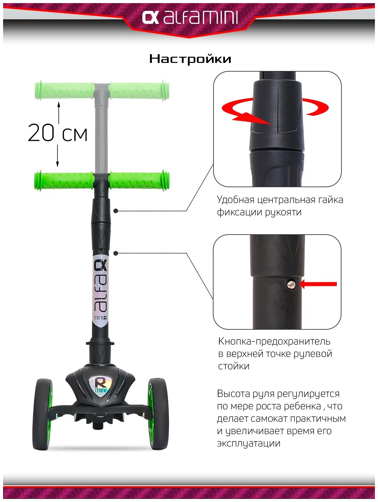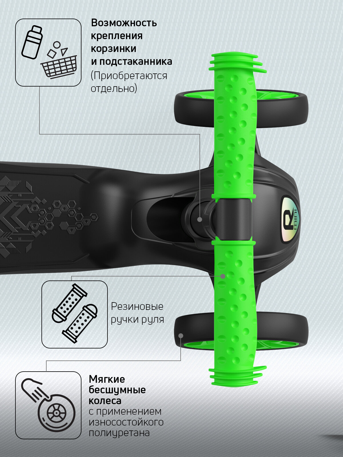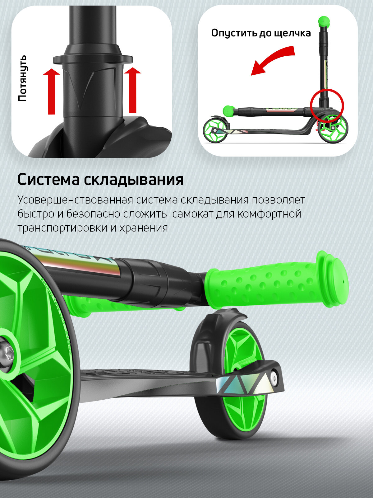 Самокат, самокат трехколесный детский, с цветными колесами и цветными ручками, Buggy Boom Alfa Mini R, зеленый