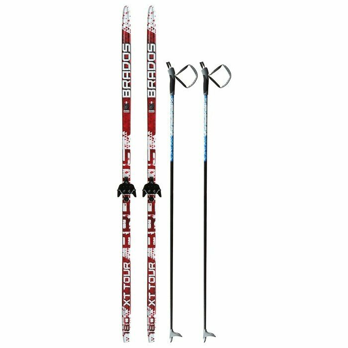 Комплект лыжный: пластиковые лыжи 180 см с насечкой, стеклопластиковые палки 140 см, крепления NN75 мм «бренд ЦСТ Step» интересное:
