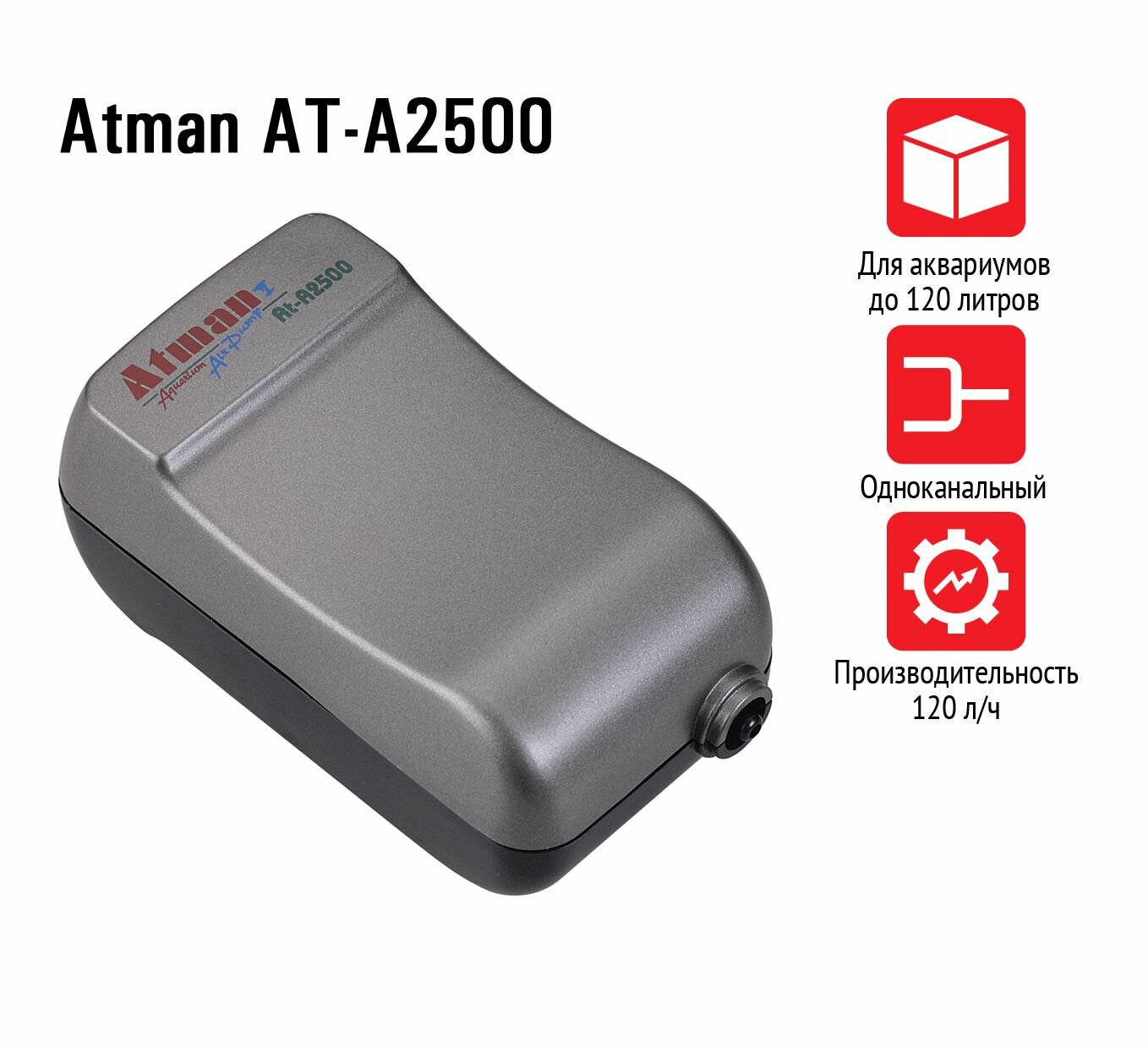 Компрессор Atman AT-A2500 для аквариумов до 120 литров, 120 л/ч, нерегулируемый интересное: