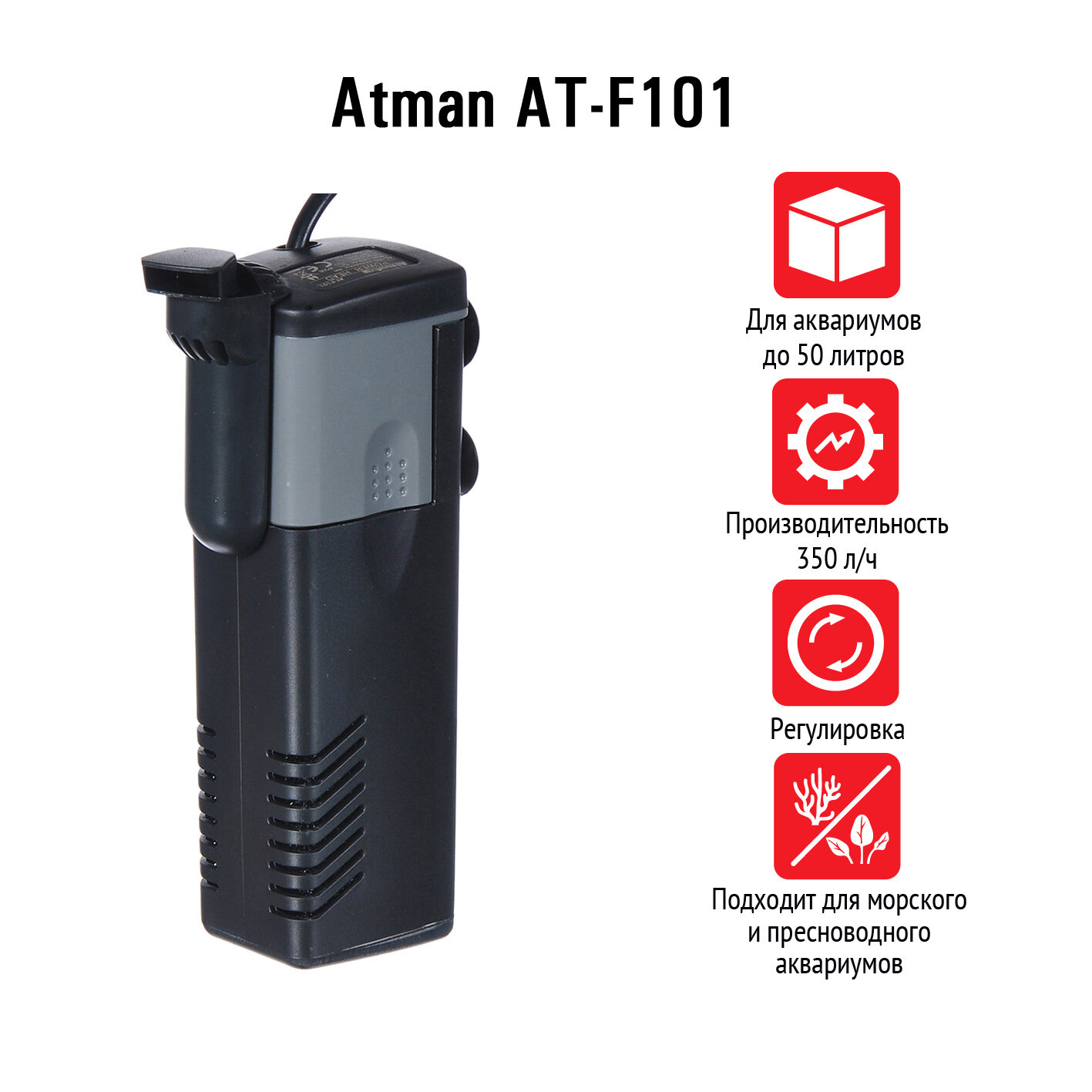 Фильтр внутренний Atman AT-F101 для аквариумов до 50 литров, 350 л/ч, 5W