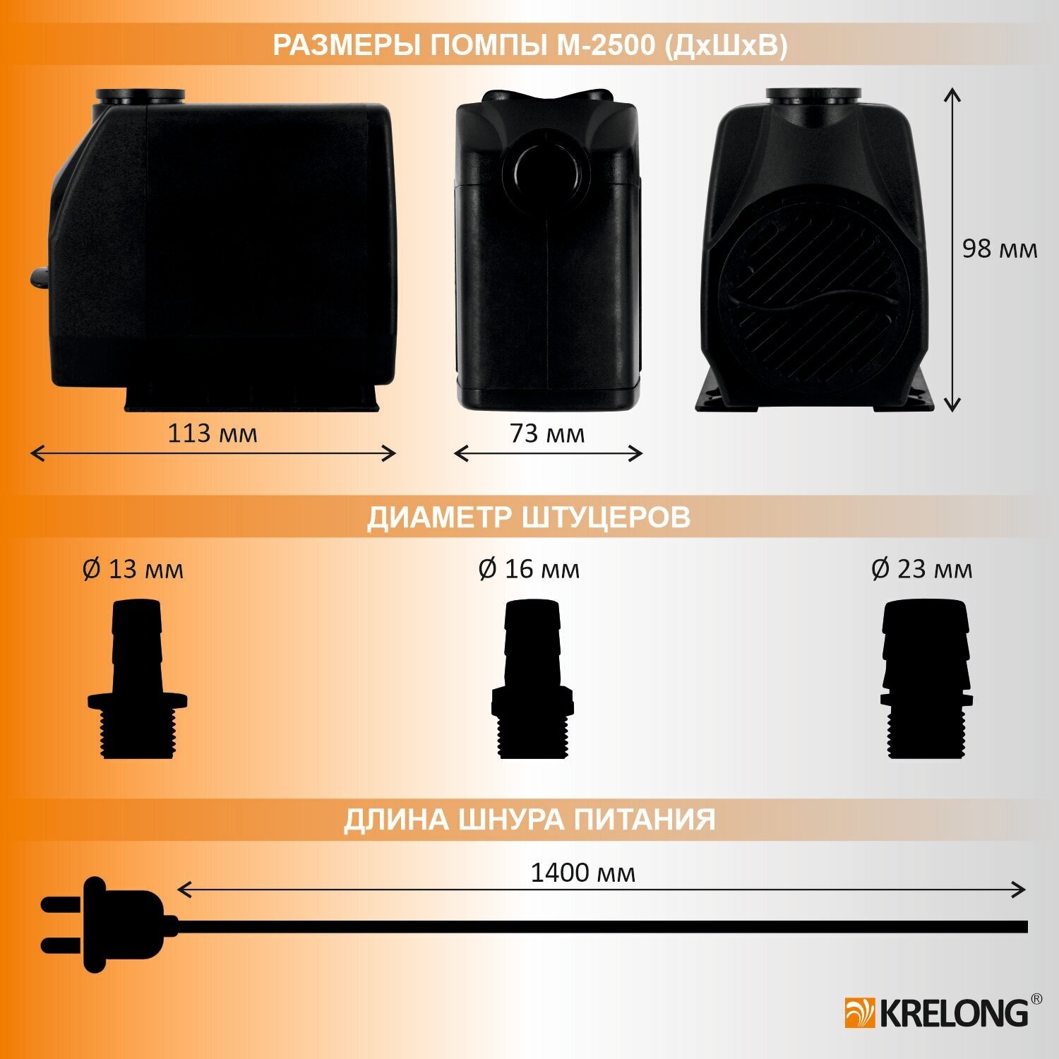 Krelong M-2500, помпа погружная регулируемая с керамической осью, 45Вт, 2500л/ч, максимальный подъем 2,50м интересное: