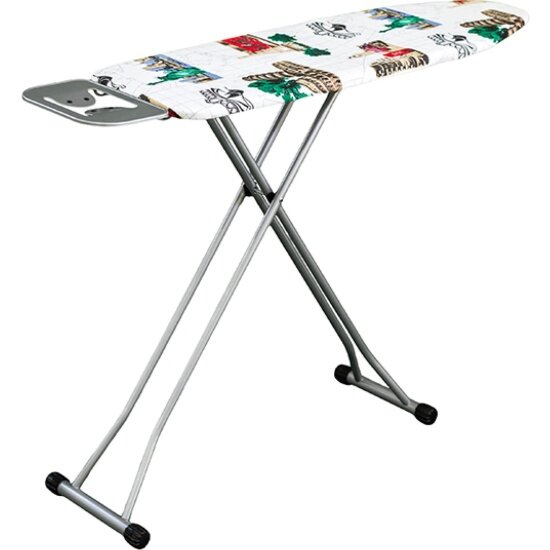 | Плюсы: | Широкая платформа для глажки, устойчивые ножки, хороший фиксатор регулировки высоты, розетка, антипригарный чехол. |
