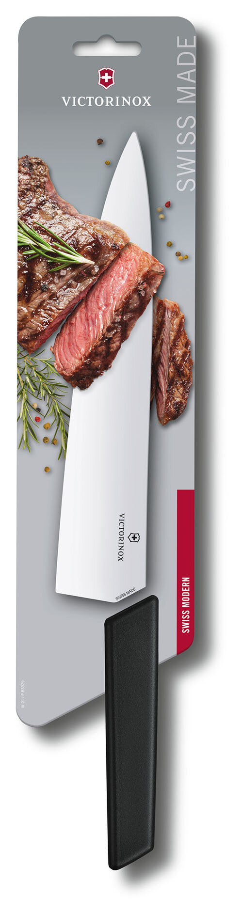 Нож разделочный VICTORINOX Swiss Modern, лезвие 25 см, черный, в блистере 6.9013.25B