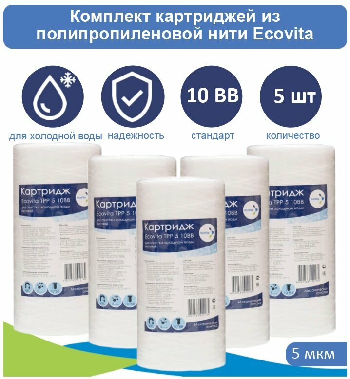 Купить Картридж полипропиленовый Ecovita TPP 5 10BB для холодной воды - 5 шт