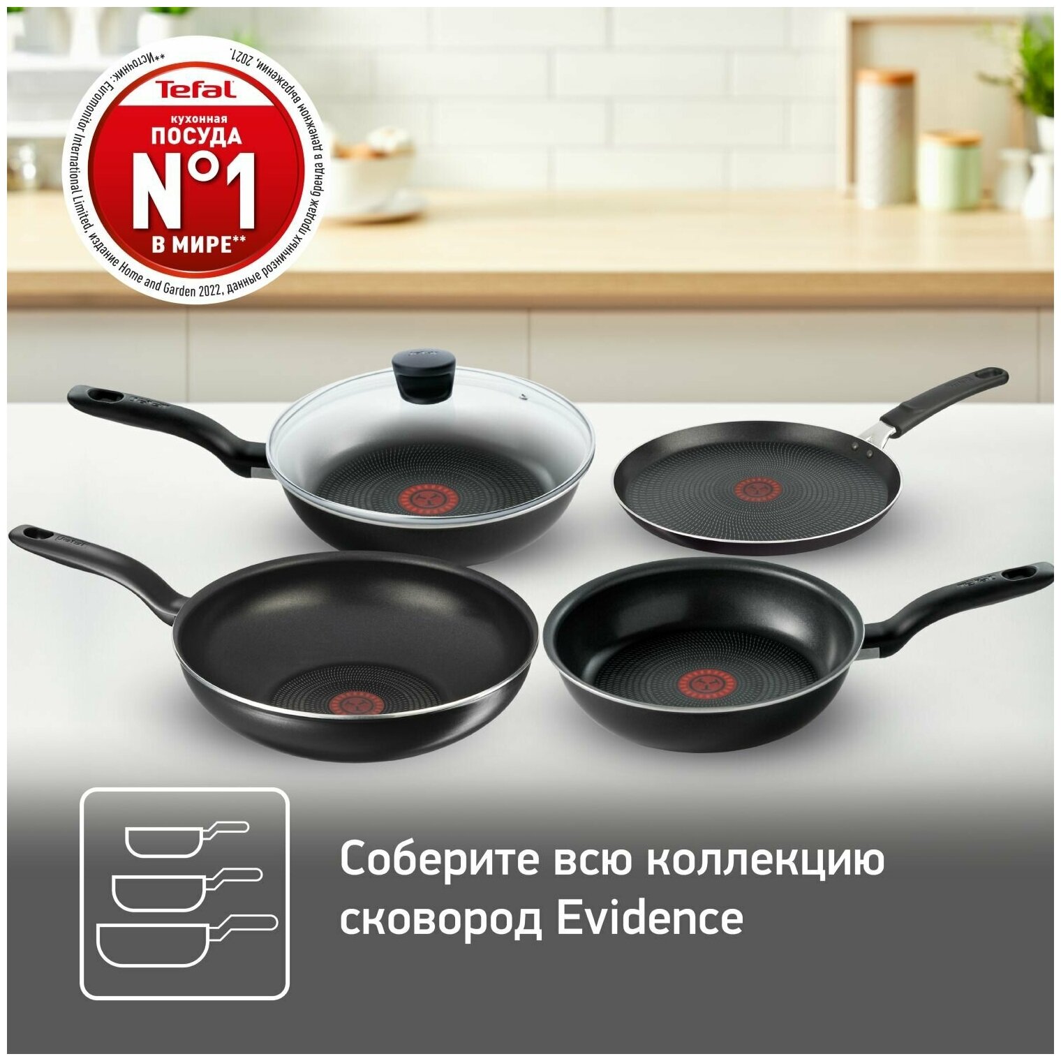 Сковорода вок Tefal Evidence 04178628, диаметр 28 см, с индикатором температуры и антипригарным покрытием, глубокая, для газовых, электрических плит интересное: