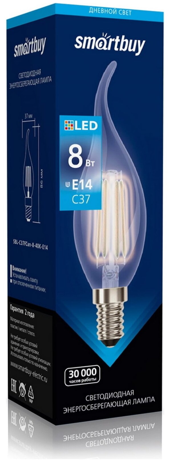Светодиодная Лампа SmartBuy Свеча на ветру FIL C37-8W/4000/E14, 1 шт. интересное:
