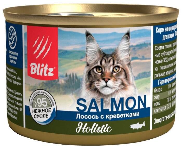 Корм Blitz Holistic Salmon для кошек, лосось с креветками, 200 г x 12 шт интересное: